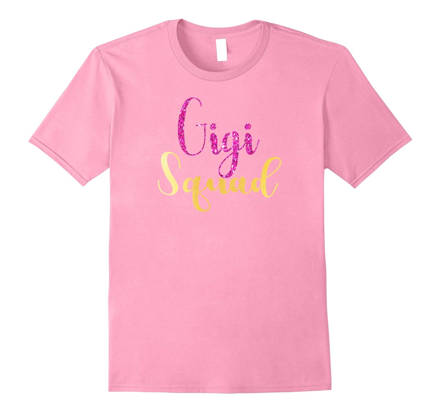 Solid colors: 100% Cotton; Heather Grey: 90% Cotton, 10% Polyester; All Other Heathers: 65% Cotton, 35% Polyester, Imported, Machine wash cold with like colors, dry low heat, Gigi Squad Pink Gold T-Shirt Funny Party Aunt Auntie Gift, Lightweight, Classic fit, Double-needle sleeve and bottom hem