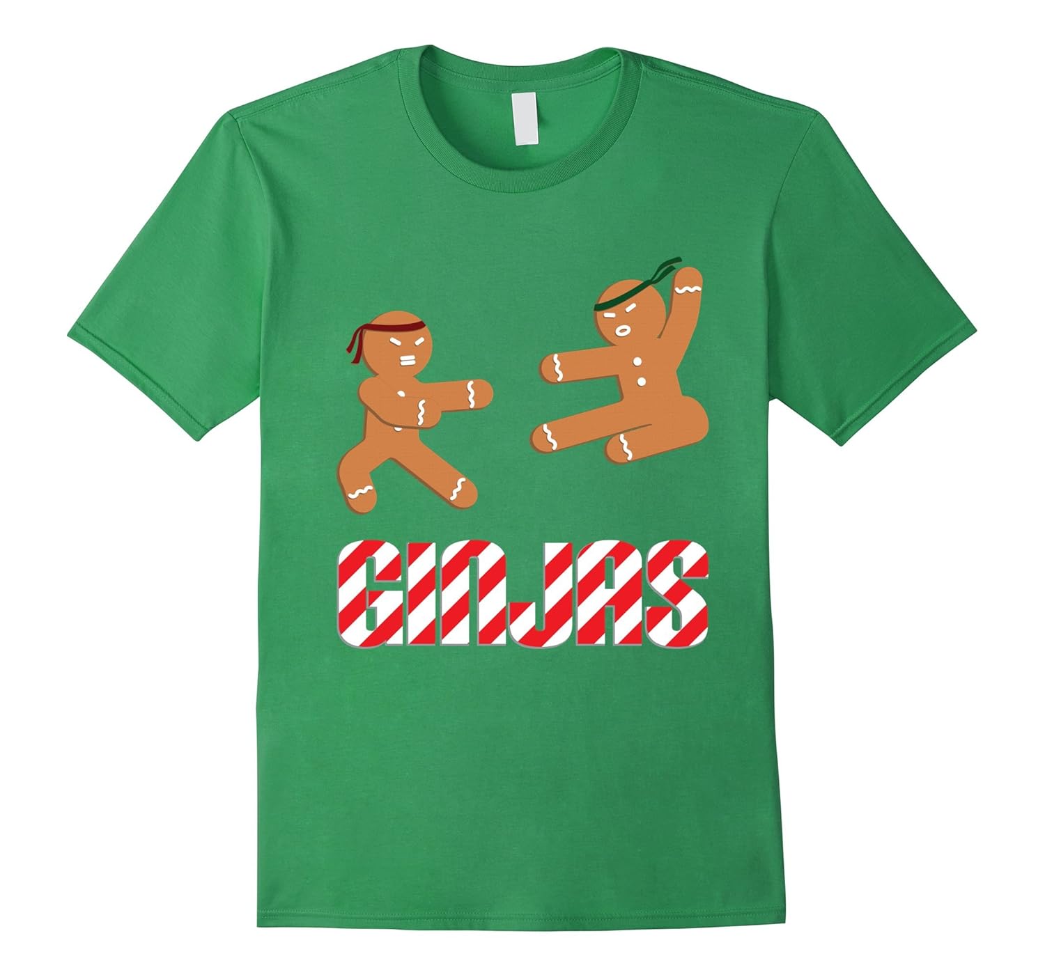 Solid colors: 100% Cotton; Heather Grey: 90% Cotton, 10% Polyester; All Other Heathers: 65% Cotton, 35% Polyester; Imported; Machine wash cold with like colors, dry low heat; If you love eating gingerbread men or dressing as a ninja then this funny Christmas t-shirt is perfect! Christmas food lovers, Gingerbread biscuit lovers Andamp; Christmas cookie lovers will love this gingerbread men shirt. For a loose fit, order a size up.; This ginja ninjas shirt is a wonderful Christmas gift idea for kids, adults, your son, brother or dad who wants to be an awesome ninja warrior Andamp; loves ninjabread men. Wear this funny gingerbread t-shirt while baking cakes with your children for Xmas.; Lightweight, Classic fit, Double-needle sleeve and bottom hem