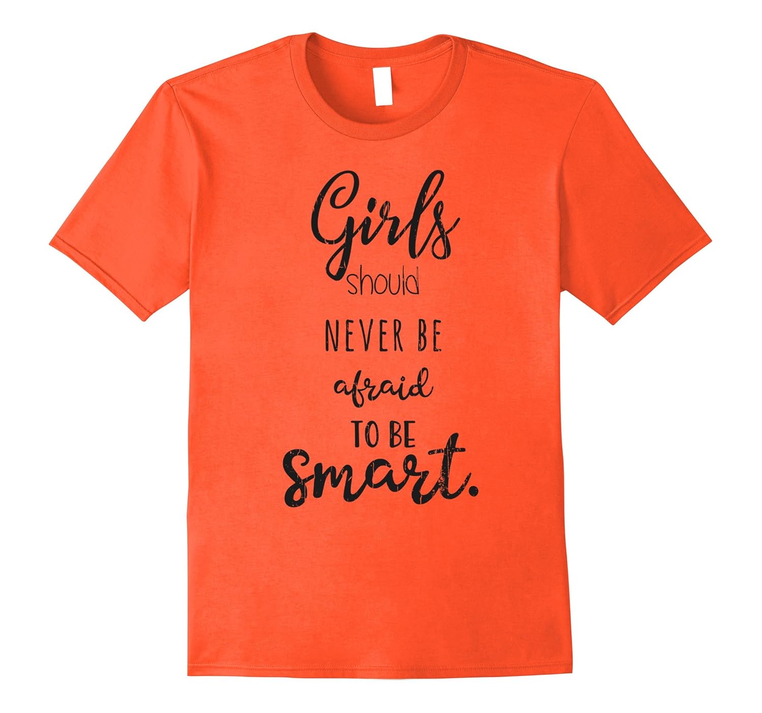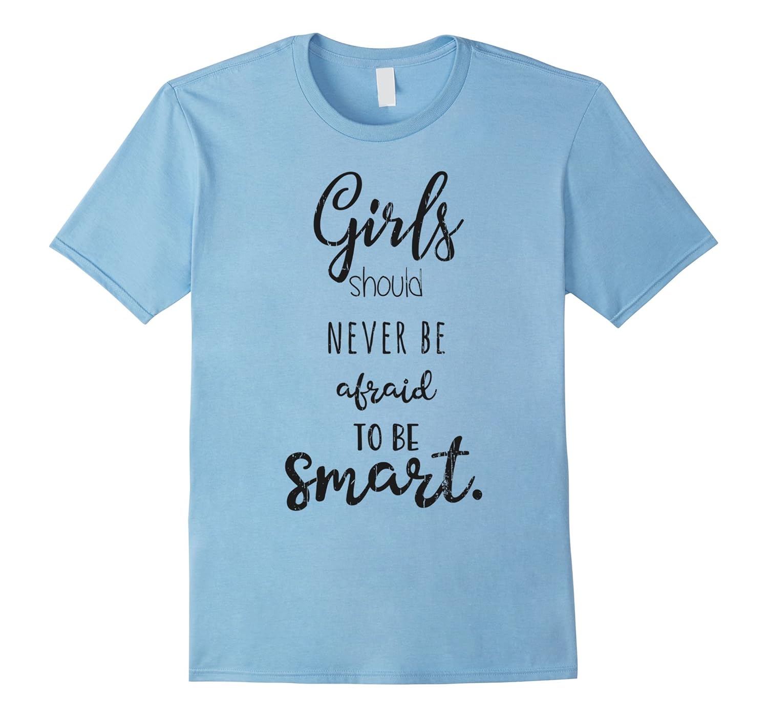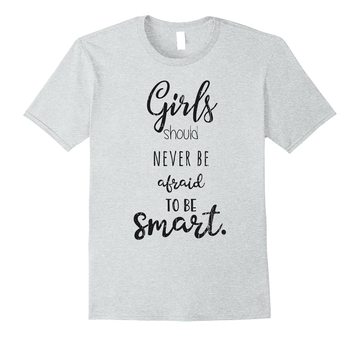 Solid colors: 100% Cotton; Heather Grey: 90% Cotton, 10% Polyester; All Other Heathers: 65% Cotton, 35% Polyester, Imported, Machine wash cold with like colors, dry low heat, Funny Quotes about smart girls Tees, Gifts Ideas For kindness Girls T Shirts, Girls Should NEVER BE afraid TO BE SMART distressed T-Shirt, Lightweight, Classic fit, Double-needle sleeve and bottom hem