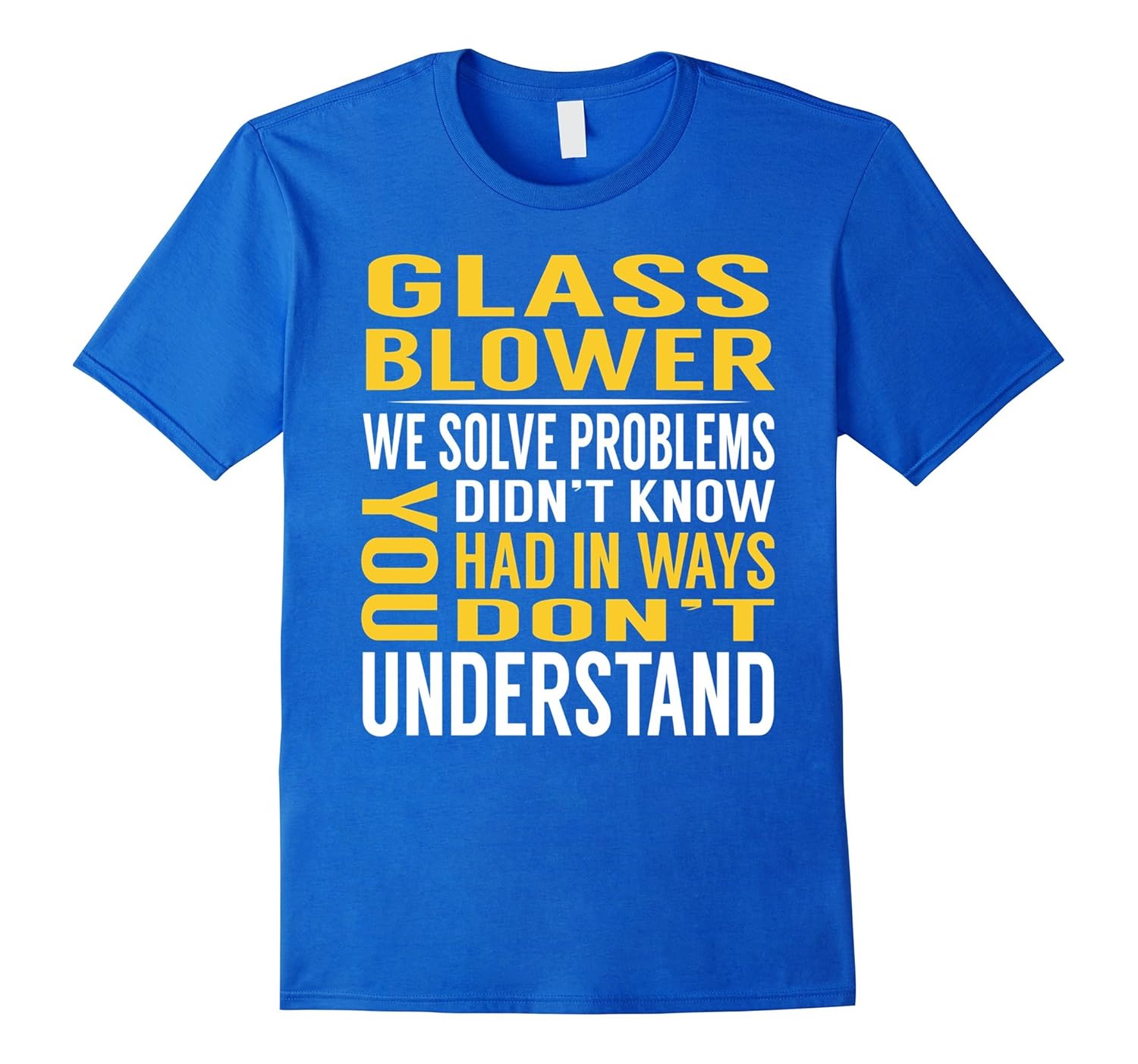 Solid colors: 100% Cotton; Heather Grey: 90% Cotton, 10% Polyester; All Other Heathers: 65% Cotton, 35% Polyester, Imported, Machine wash cold with like colors, dry low heat, Glass Blower funny apparel novelty accessories costume outfits farbic dress shirt tshirt gifts funny ideas for women men, Glass Blower We Solve Problems You Didn”t Know You Had In Ways You Don”t Understand TShirt, Great gift shirt tshirt for Glass Blower, Lightweight, Classic fit, Double-needle sleeve and bottom hem
