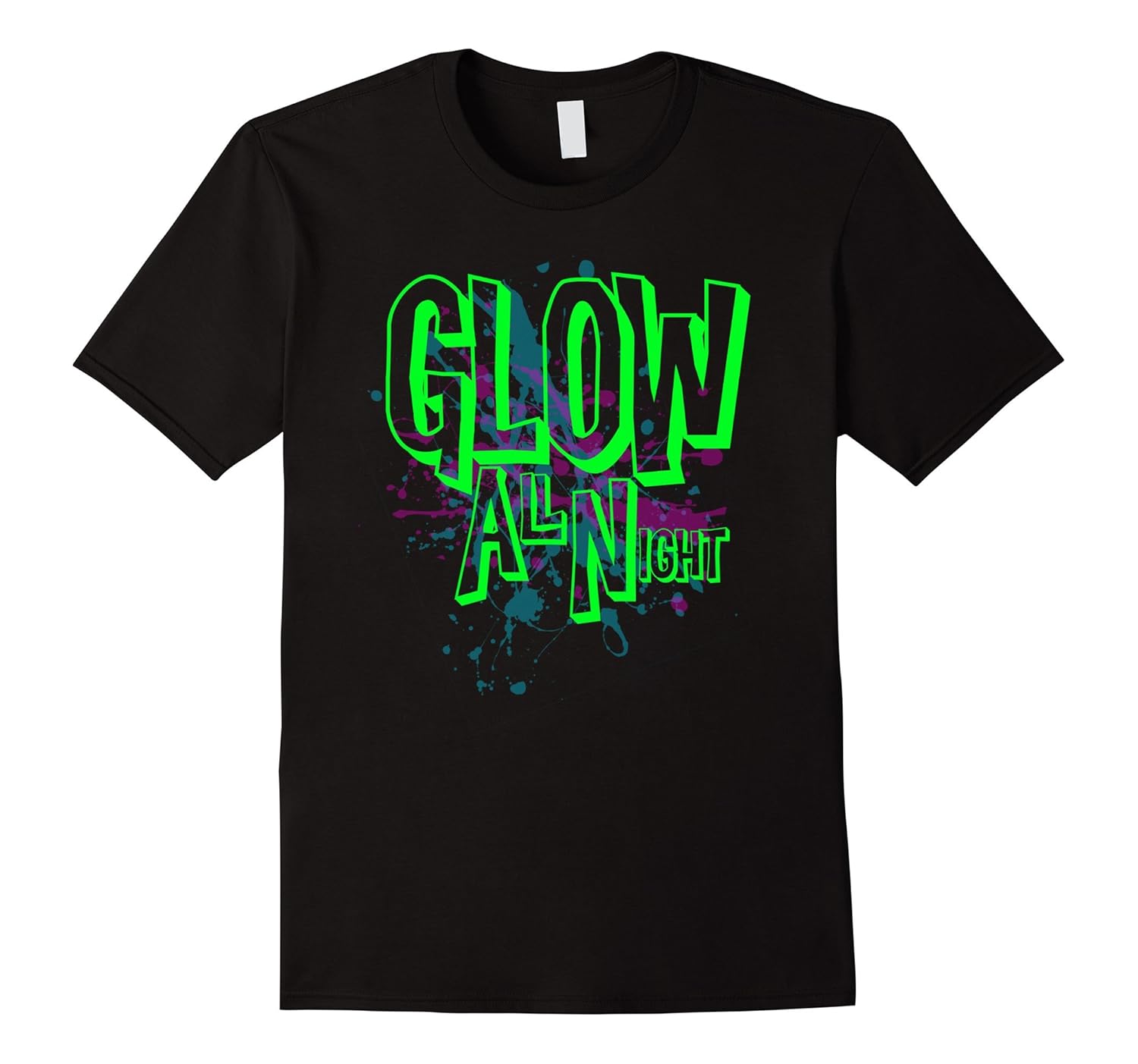 Solid colors: 100% Cotton; Heather Grey: 90% Cotton, 10% Polyester; All Other Heathers: 65% Cotton, 35% Polyester, Imported, Machine wash cold with like colors, dry low heat, Glow All Night T-Shirt Neon Theme 80”s Party Tee. Great for a glow party under the blacklight. Make this one of your glow party accessories, add a few glow sticks and glow-in-the-dark makeup for a perfect 80”s dance party. Designed by TeesTees. Be sure to check out the entire selection of TeesTees apparel for more designs like this and much more. Lightweight, Classic fit, Double-needle sleeve and bottom hem