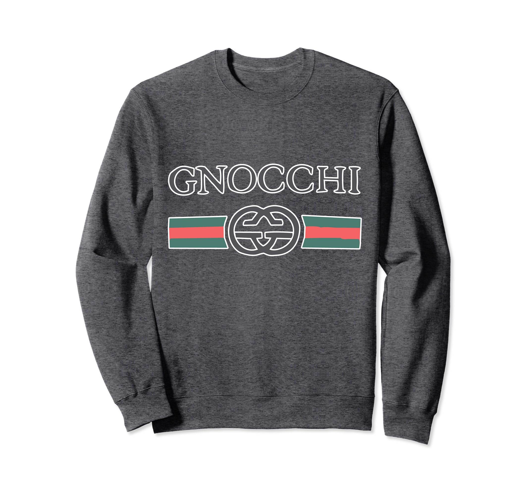 Solid colors: 80% Cotton, 20% Polyester; Heather Grey: 78% Cotton, 22% Poly; Dark Heather: 50% Cotton, 50% Polyester; Imported; Machine wash cold with like colors, dry low heat; Gnocchi Sweater Pasta. This vintage styled fashion sweat shirt shows that you know fashion and food. Show the world your love for your favorite type of pasta, Gnocchi!; Gnocchi Pullover Pasta. Gift for your dad, father, brother, husband, boyfriend, son, uncle, girlfriend, sister, mom, mother, parents, buddy, friends or family on St Patricks Day, Christmas, Xmas, Mothers Day, Fathers Day, New Year, Halloween.; 8.5 oz, Classic fit, Twill-taped neck