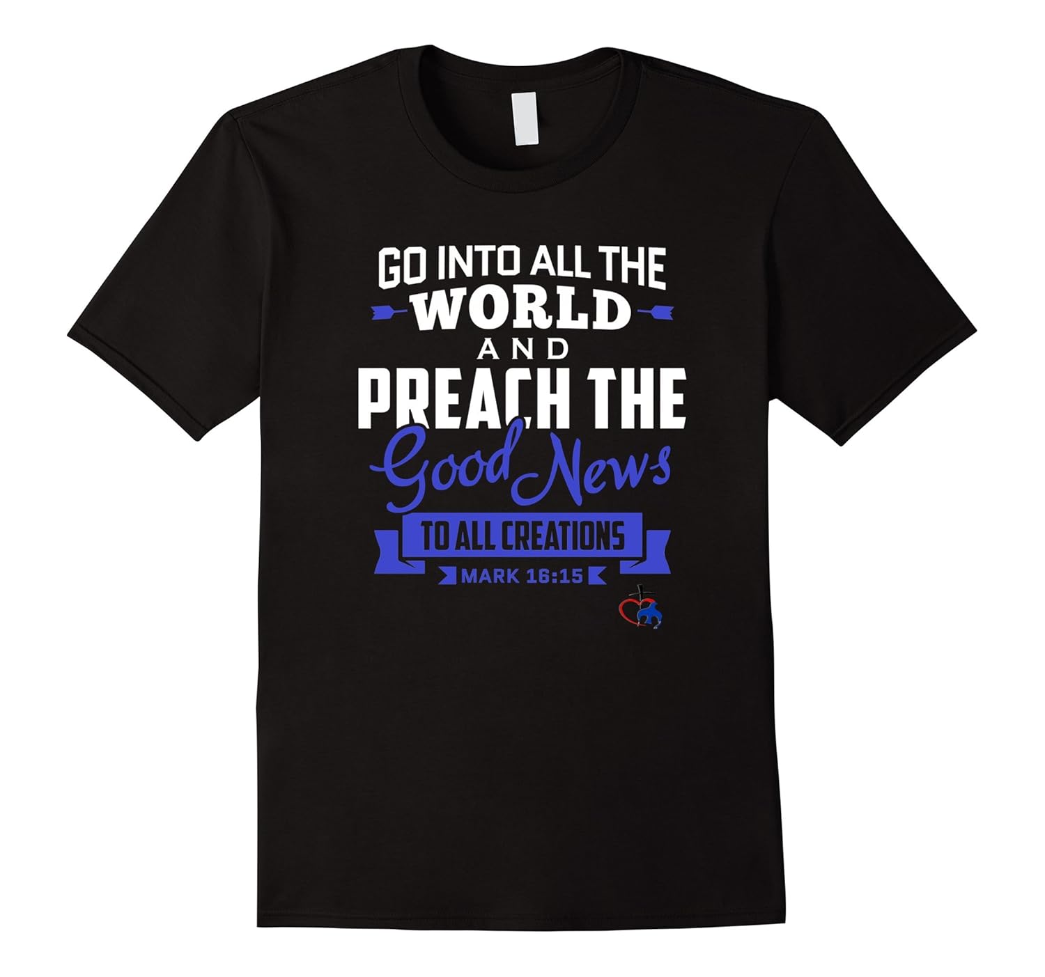 Solid colors: 100% Cotton; Heather Grey: 90% Cotton, 10% Polyester; All Other Heathers: 65% Cotton, 35% Polyester, Imported, Machine wash cold with like colors, dry low heat, Based on The Great Commission found in Mark 16:15- Go into all the world and preach the good news to all creations, Represent Christ, Demonstrate Love and Witness with Scripture based Tees, Lightweight, Classic fit, Double-needle sleeve and bottom hem