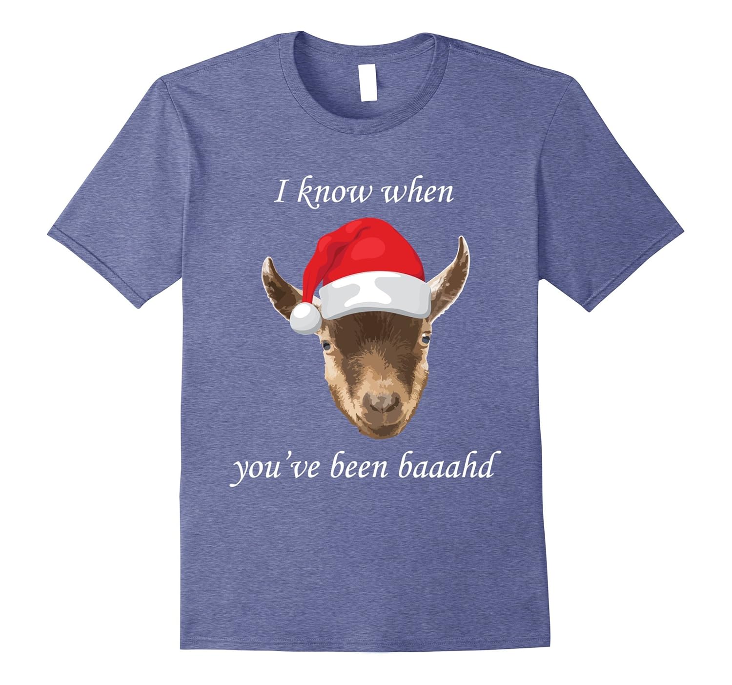 Solid colors: 100% Cotton; Heather Grey: 90% Cotton, 10% Polyester; All Other Heathers: 65% Cotton, 35% Polyester; Imported; Machine wash cold with like colors, dry low heat; Santa Goat Knows when you have been bad. This is a great tshirt for farmers, goat lovers, and kids.; Christmas humor, Santa Claus. Holiday; Lightweight, Classic fit, Double-needle sleeve and bottom hem