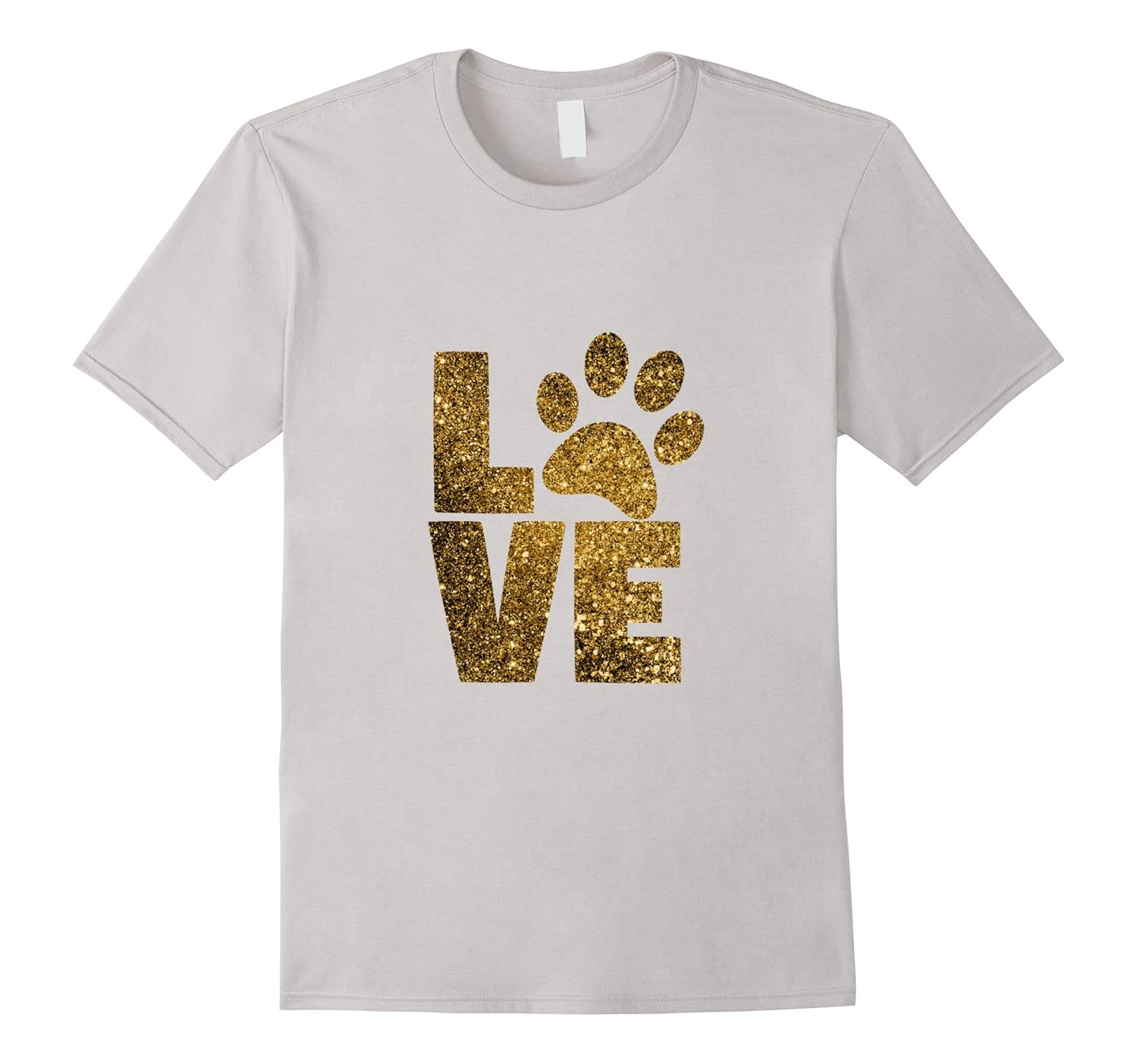 Gold Glitter Dog and Cat Love Paw Print T-Shirt-ANZ