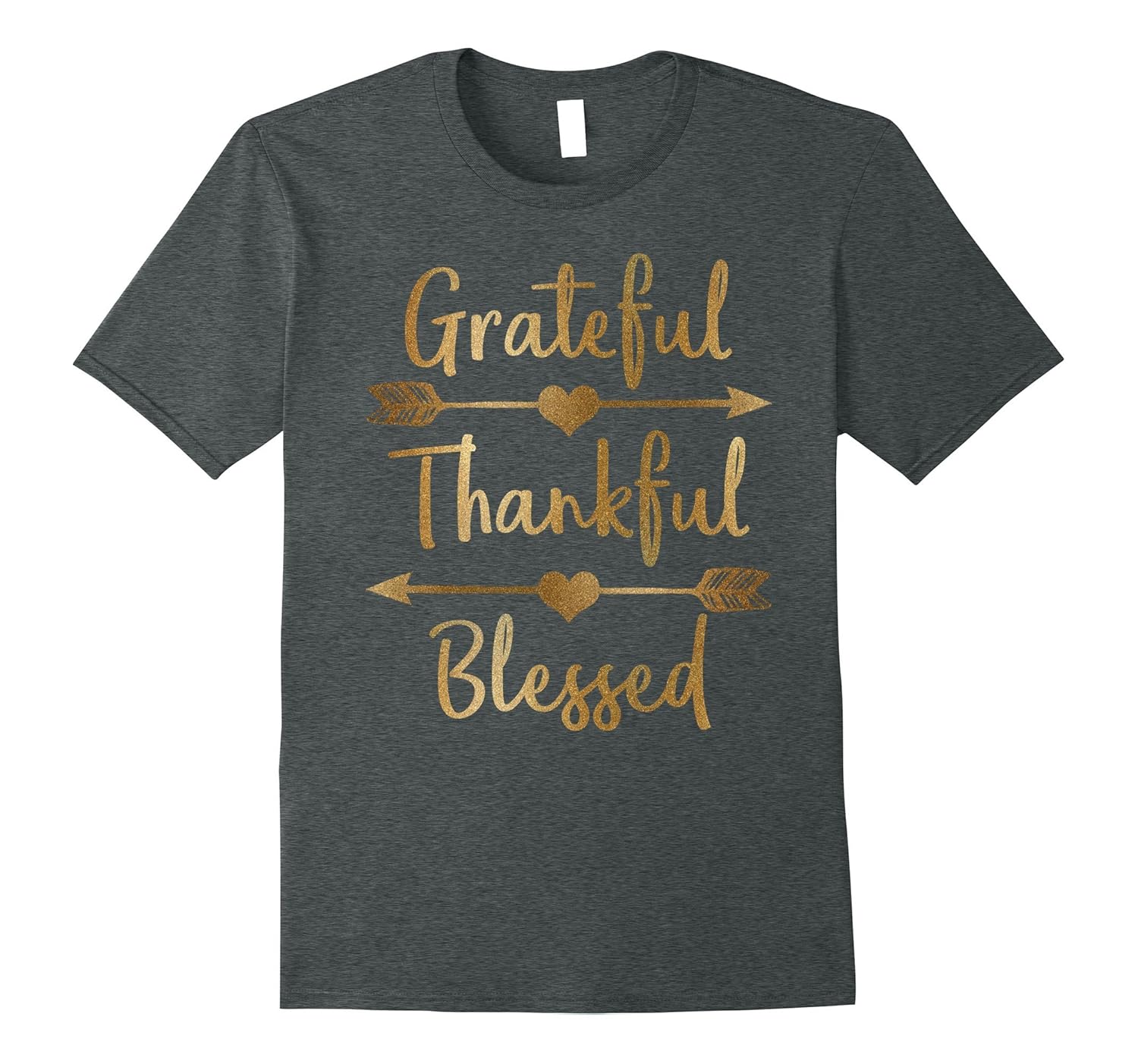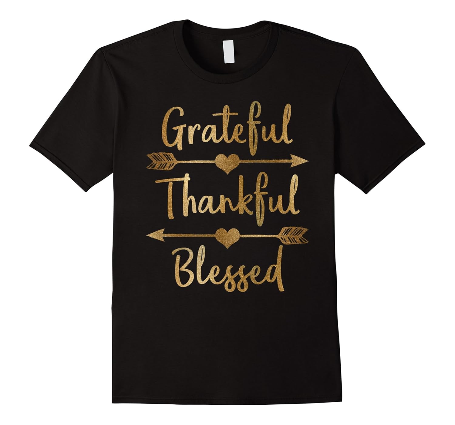 Gold Grateful Thankful Blessed Thanksgiving Shirt-ANZ