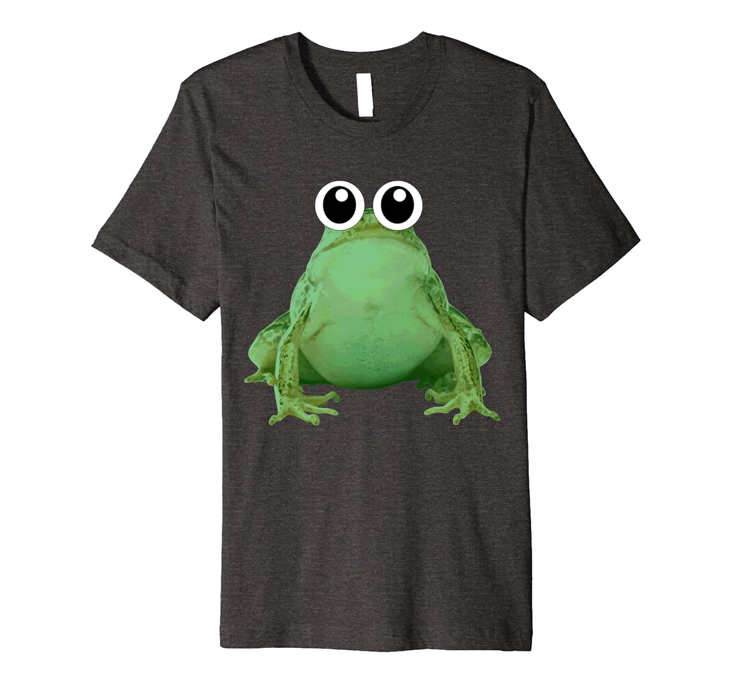 Solid colors: 100% Cotton; Heather Grey: 90% Cotton, 10% Polyester; All Other Heathers: 58% Cotton, 42% Polyester; Imported; Machine wash cold with like colors, dry low heat; Its a googly eyed frog shirt. I mean, seriously, who wouldnt want this?; Fit: Slim (consider ordering a larger size for a looser fit); Its part real frog and part cartoon. Its literally the best of everything. For the reptile / amphibian lover or herpetologist in your family.; This premium t-shirt is made of lightweight fine jersey fabric