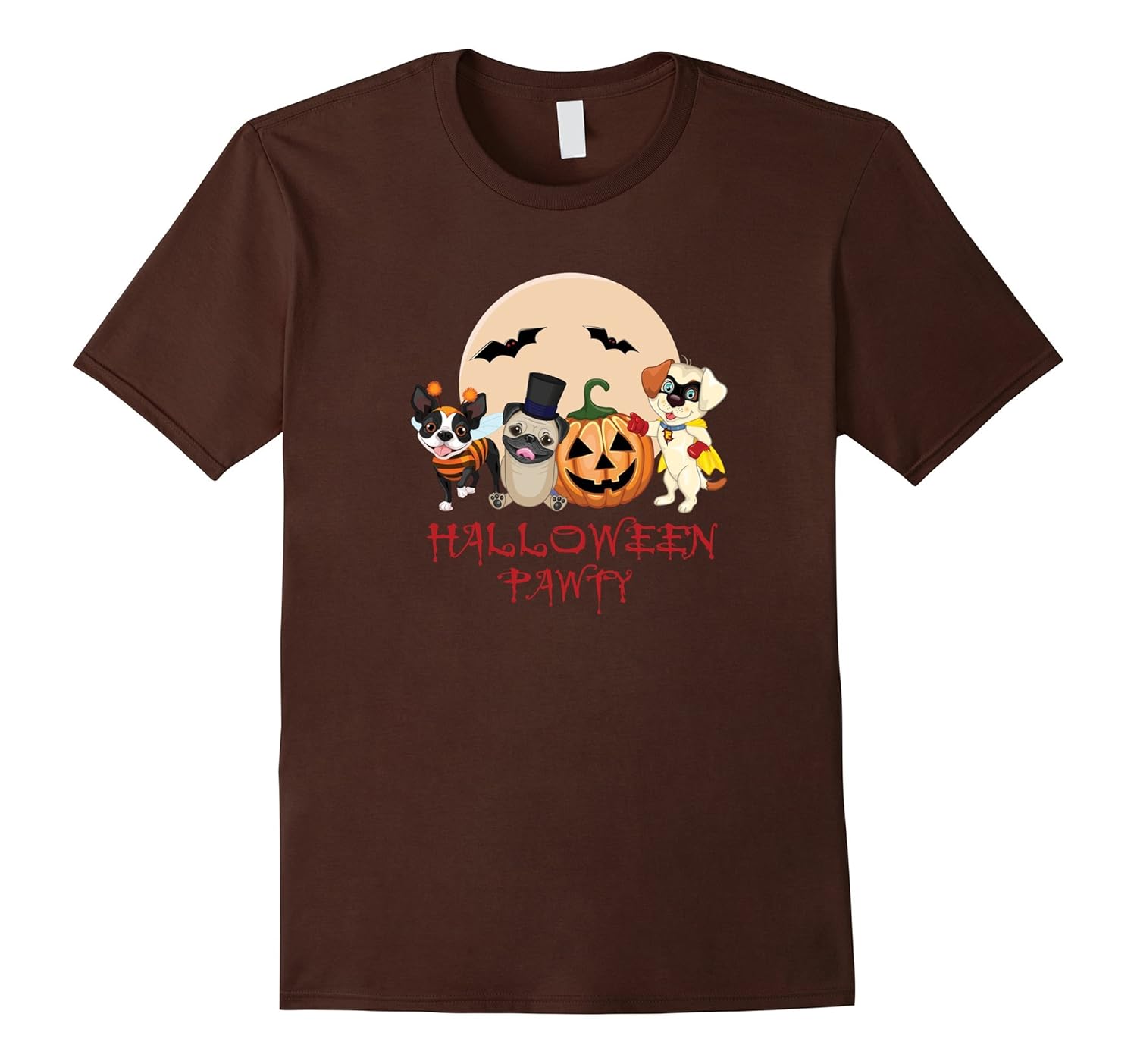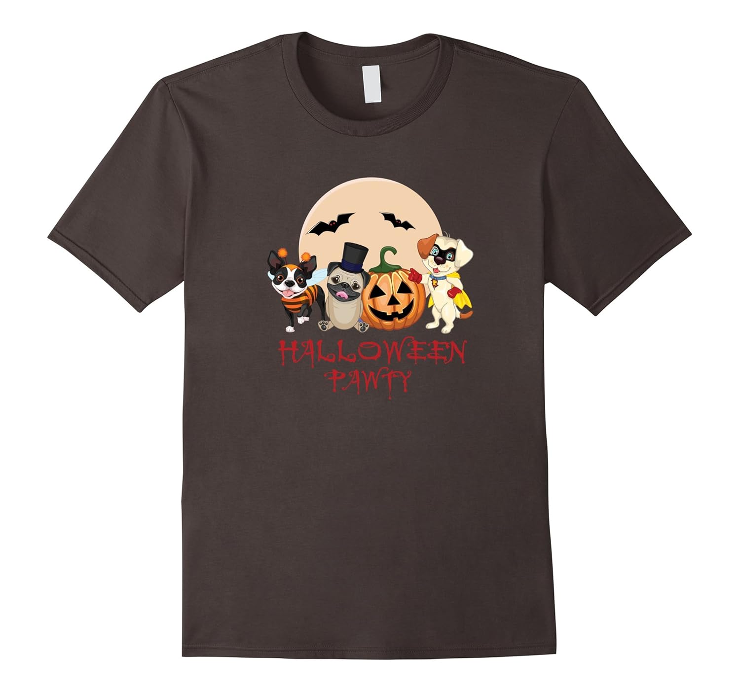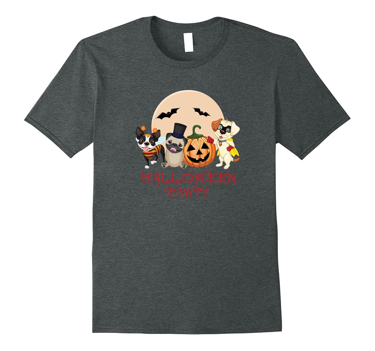 Solid colors: 100% Cotton; Heather Grey: 90% Cotton, 10% Polyester; All Other Heathers: 65% Cotton, 35% Polyester; Imported; Machine wash cold with like colors, dry low heat; Cute puppy halloween party tee featuring boston terrier, pug, lab puppy and pumpkin all in halloween costume ready to party!; Kids will adore this puppy cartoon tee for halloween school party Andamp; trick or treating. Adults, Veterinarians and nurses, animal shelter volunteers will love it too!; Lightweight, Classic fit, Double-needle sleeve and bottom hem