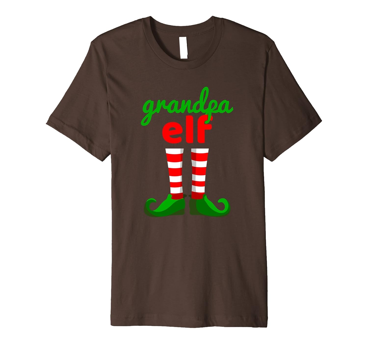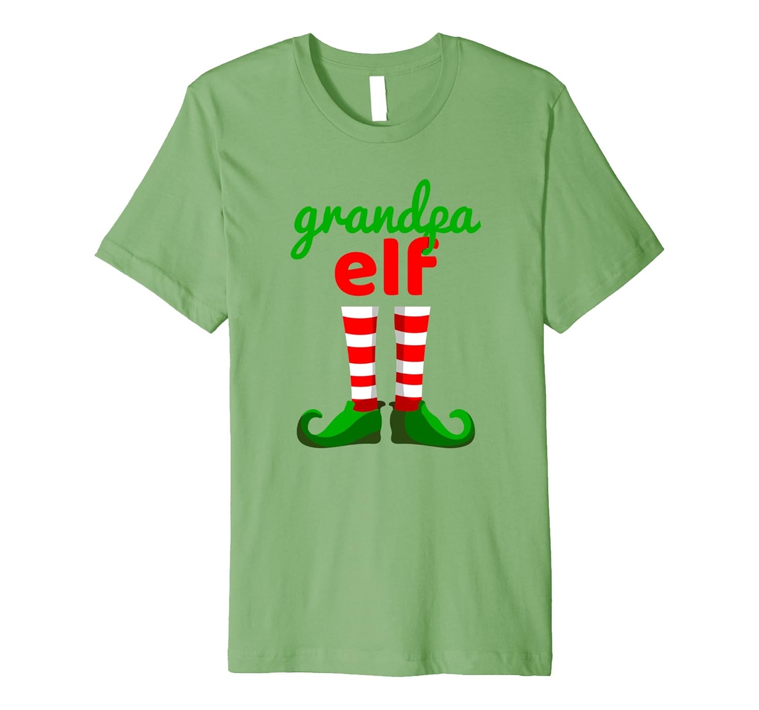Solid colors: 100% Cotton; Heather Grey: 90% Cotton, 10% Polyester; All Other Heathers: 58% Cotton, 42% Polyester; Imported; Machine wash cold with like colors, dry low heat; TShirt: Grandpa Elf T-Shirt. Featuring a cute elf legs and Grandpa Elf quote. Perfect as a gift for holidays such as a birthday, Christmas, Valentines day, New Years, Easter or Halloween costume. Perfect men gift for your grandfather.; Fit: Slim (consider ordering a larger size for a looser fit); Cute Tshirt for Xmas Parties. Family Gift Idea Tshirt, Party Tshirt, Ugly Sweater Tshirt. Perfect in addition with long elf ears, hat, pants, shoes, boot covers, striped tights, dress, decorations, accessories, doll, tree elf, .. Santa helper costume.; This premium t-shirt is made of lightweight fine jersey fabric