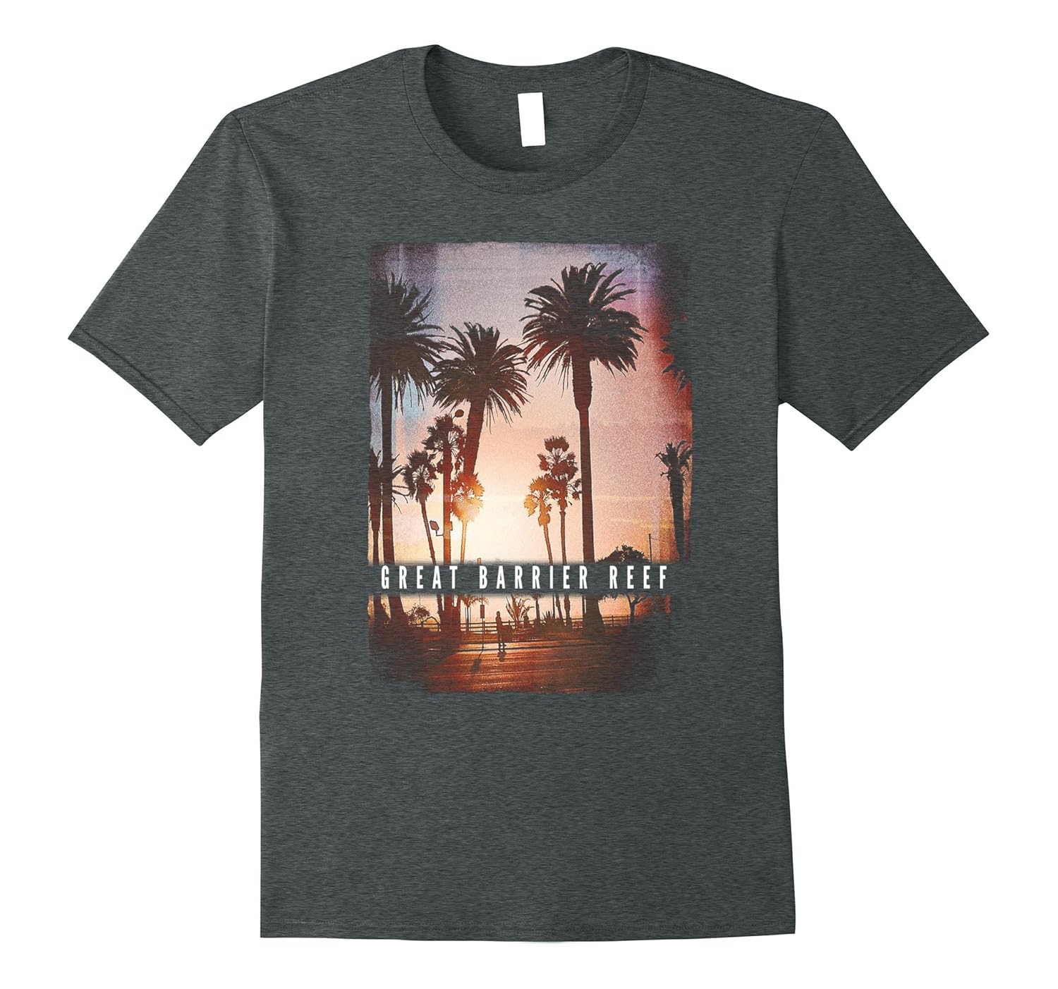 Solid colors: 100% Cotton; Heather Grey: 90% Cotton, 10% Polyester; All Other Heathers: 65% Cotton, 35% Polyester; Imported; Machine wash cold with like colors, dry low heat; Retro Great Barrier Reef tshirt with ocean beach elements puts out tropical Australian vibe. Palm tree tshirt great year round, summer Andamp; winter. Cool sunset tshirt for women men girls boys. Great Barrier Reef tee snorkeling surf lake Andamp; pool. Australia tee.; Unique gifts for Christmas birthdays Andamp; holidays for family Andamp; friends. Great Barrier Reef tshirt for family vacation. Great Barrier Reef tee adults. Great Barrier Reef tshirt women men. Stylish Australian vacation Andamp; back to school short sleeve beach shirt.; Lightweight, Classic fit, Double-needle sleeve and bottom hem