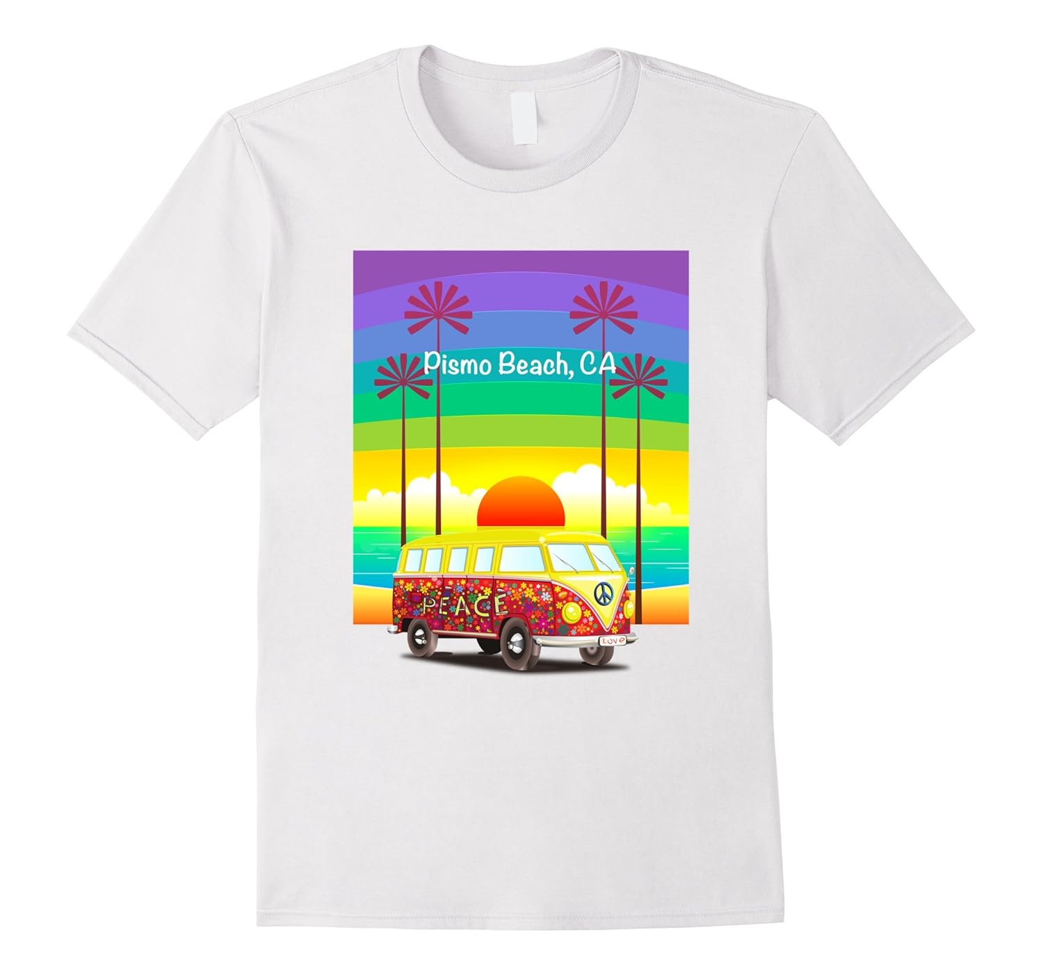 Solid colors: 100% Cotton; Heather Grey: 90% Cotton, 10% Polyester; All Other Heathers: 65% Cotton, 35% Polyester, Imported, Machine wash cold with like colors, dry low heat, Relaxing days in the surf and on the sandy beach. This comfortable shirt is a great beach T-shirt for Pismo Beach. Cool beach van and surfboard make the beach scene. If you enjoy Pismo Beach wear this great Pismo Beach t-shirt and share Pismo Beach pride, Enjoy Pismo Beach sunsets, walks, surfing, fishing, volleyball, or whatever makes you happy. Living in Pismo Beach, vacationing in Pismo Beach, or a local simply enjoying Pismo Beach, you can wear this great Pismo Beach shirt with a knowing smile. Lightweight, Classic fit, Double-needle sleeve and bottom hem