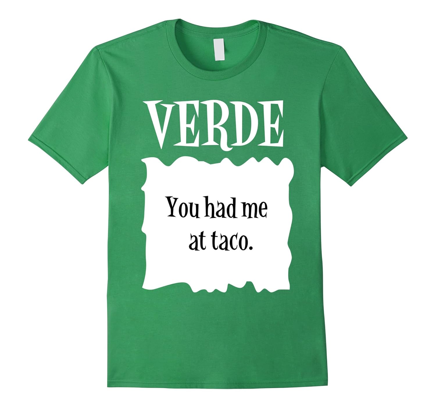 Solid colors: 100% Cotton; Heather Grey: 90% Cotton, 10% Polyester; All Other Heathers: 65% Cotton, 35% Polyester, Imported, Machine wash cold with like colors, dry low heat, You had me at taco green salsa hot sauce funny costume outfit tee shirt, Halloween and thanksgiving themed party inexpensive costume idea. Salsa mexican sauce, verde means green in spanish, Lightweight, Classic fit, Double-needle sleeve and bottom hem