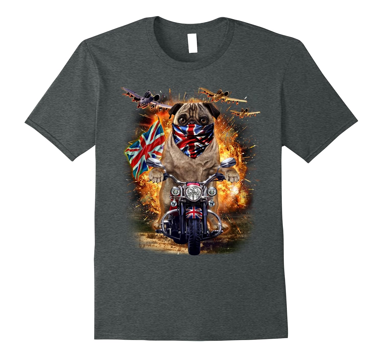 Grumpy Pug Ride Motorcycle in Union Jack Bandana Dog T-Shirt-ANZ