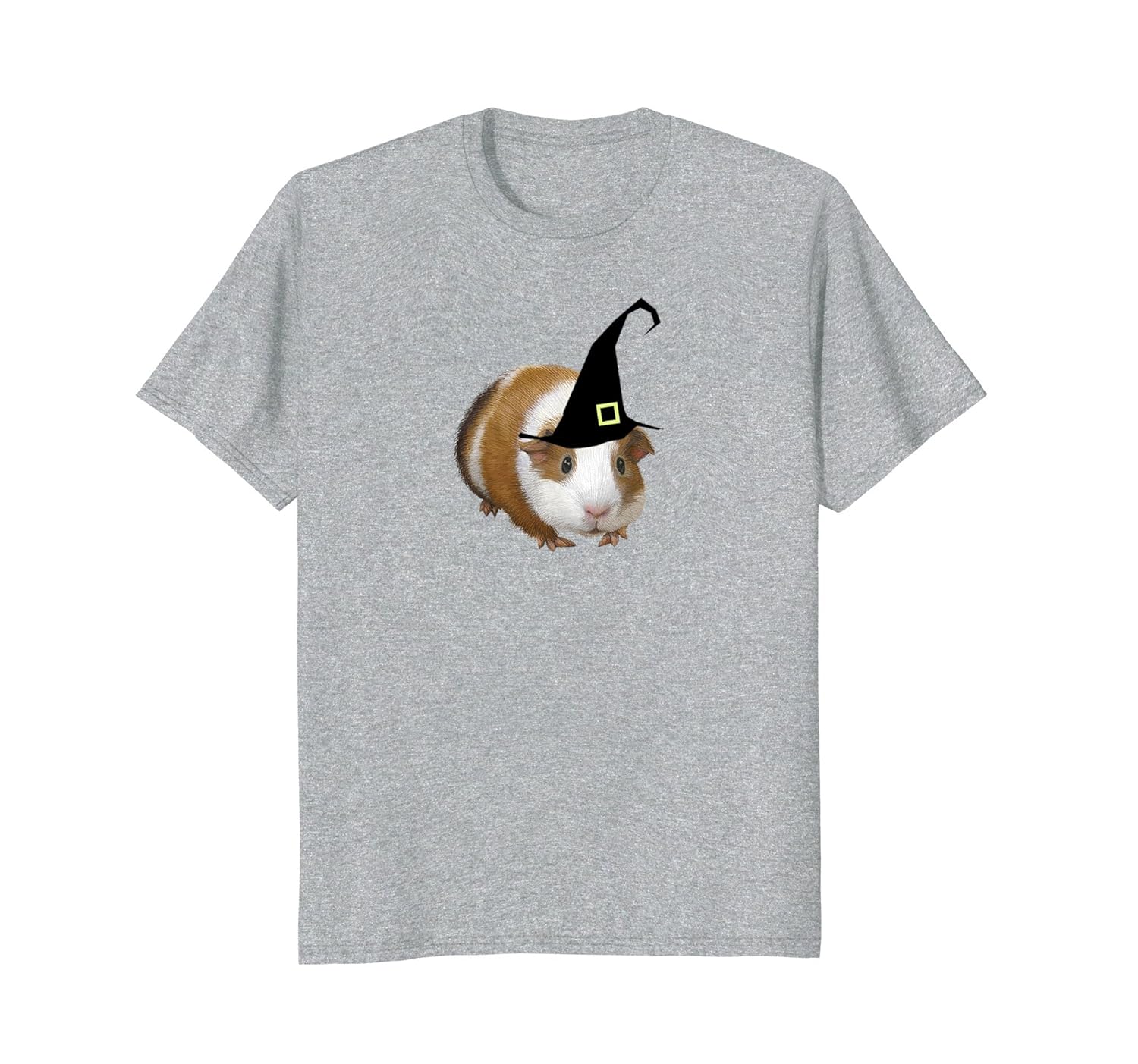 Solid colors: 100% Cotton; Heather Grey: 90% Cotton, 10% Polyester; All Other Heathers: 50% Cotton, 50% Polyester; Imported; Machine wash cold with like colors, dry low heat; T-SHIRT FEATURES ADORABLE TAN Andamp; WHITE GUINEA PIG WEARING A BLACK WITCHS HAT. HILARIOUS TEE FOR HALLOWEEN PARTIES.; WEAR THIS FUN, BOLD, EYE-CATCHING TSHIRT TO HALLOWEEN EVENTS, TRICK OR TREAT, APPLE PICKING, TO THE PUMPKIN PATCH, CARVING PUMPKINS JACK O LANTERNS, COSTUME PARTIES, SCHOOL Andamp; WORK, FUNDRAISERS, WEAR IN LIEU OF A COSTUME, YET STILL LOOK AND FEEL FESTIVE.; Lightweight, Classic fit, Double-needle sleeve and bottom hem