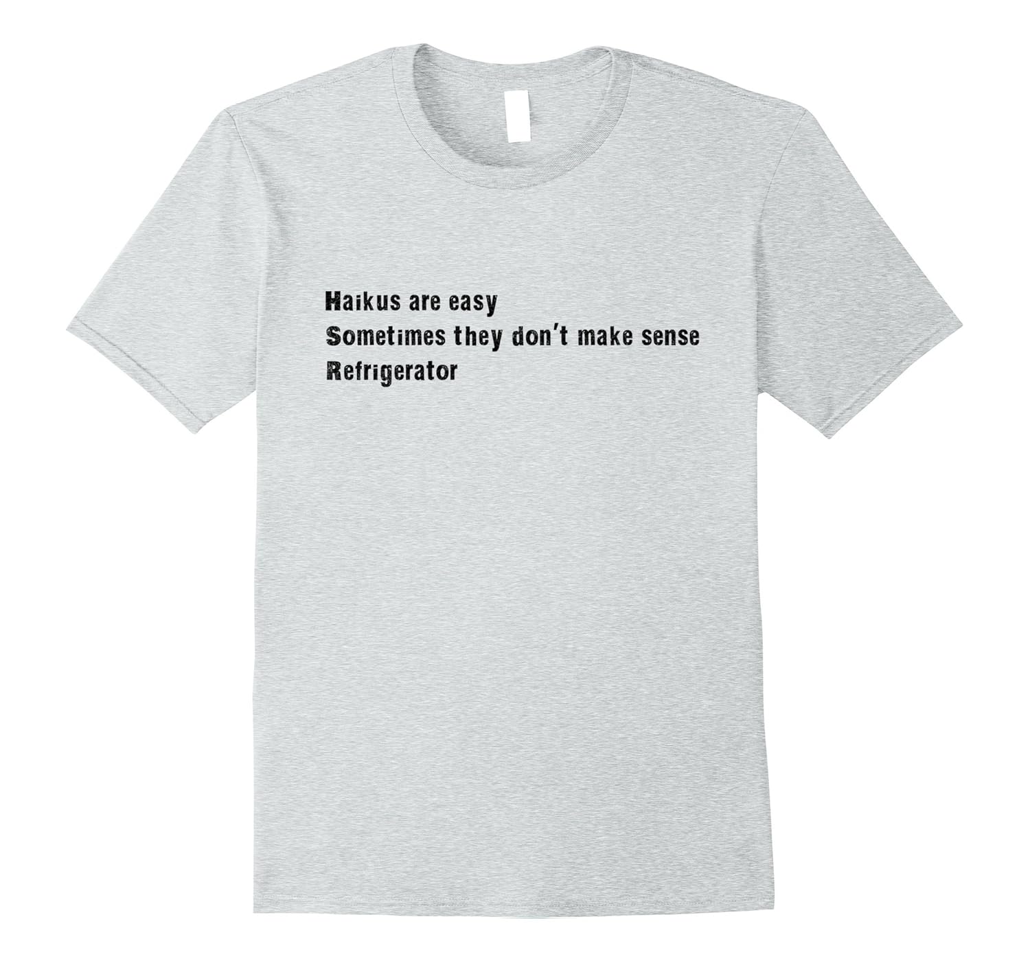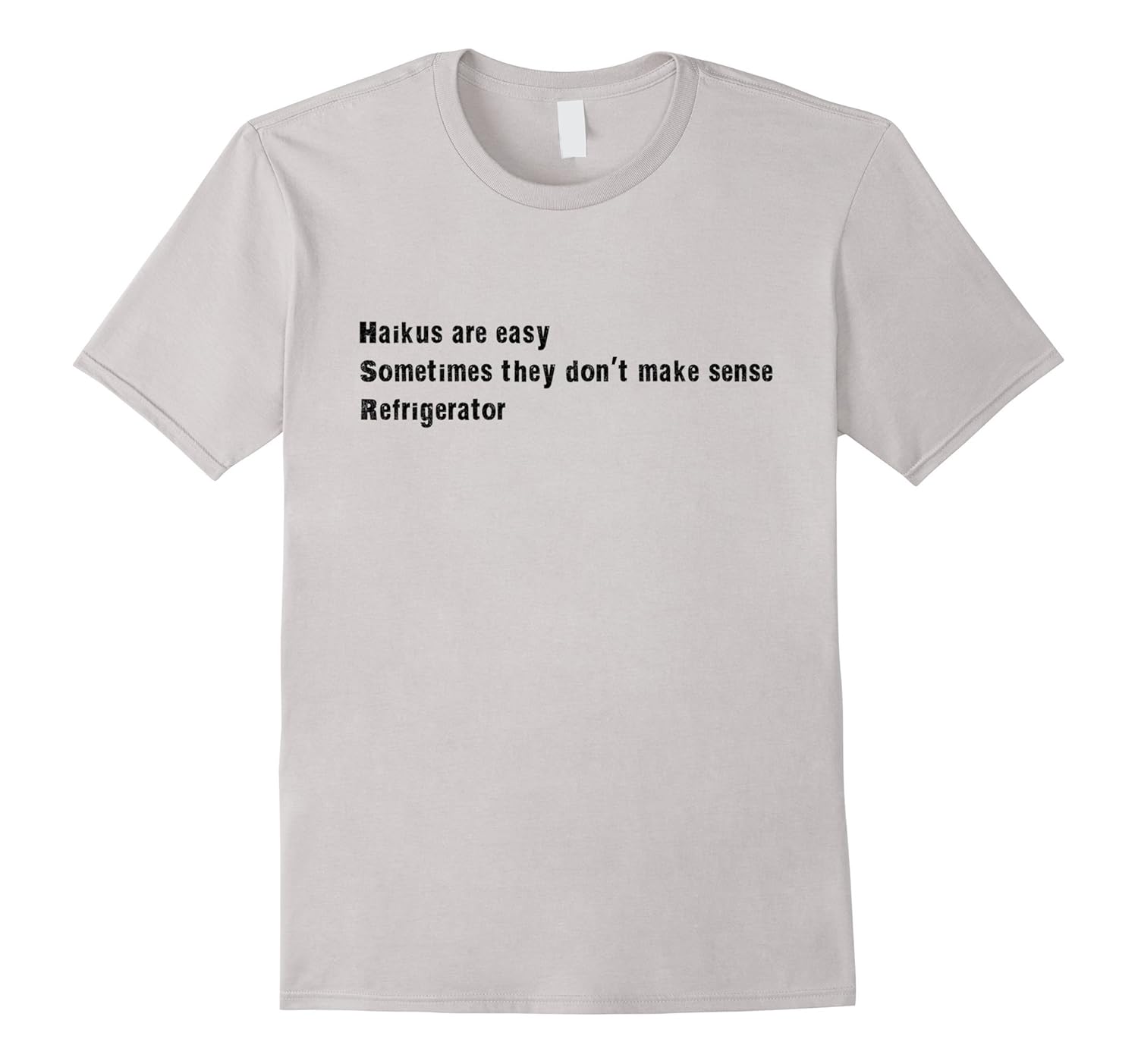 Solid colors: 100% Cotton; Heather Grey: 90% Cotton, 10% Polyester; All Other Heathers: 65% Cotton, 35% Polyester, Imported, Machine wash cold with like colors, dry low heat, Funny t-shirt that reads “Haikus are easy But sometimes they don”t make sense Refrigerator”. A Haiku is a poetic form originating from Japan. This poem follows the traditional three line format. Lightweight, Classic fit, Double-needle sleeve and bottom hem