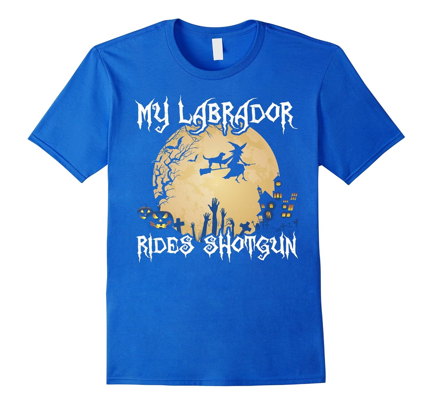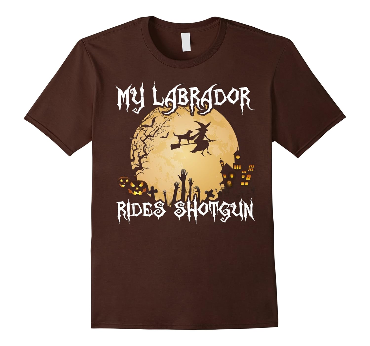 Solid colors: 100% Cotton; Heather Grey: 90% Cotton, 10% Polyester; All Other Heathers: 65% Cotton, 35% Polyester; Imported; Machine wash cold with like colors, dry low heat; You are looking for a labrador retriever shirt for a lab lover on this Halloween? This apparel is a perfect clothing to wear to Halloween party or haunted house, go trick or treating. Click brand name BeeTee – Labrador T-Shirt for more humorous designs.; Featuring a scary witch and a labrador riding on a broom in front of the moon, a Jack O Lantern pumpkin and castle in the spooky background, this tee is a unique gift idea for your family member, friends or special ones on Halloween party or Hallows Eve.; Lightweight, Classic fit, Double-needle sleeve and bottom hem