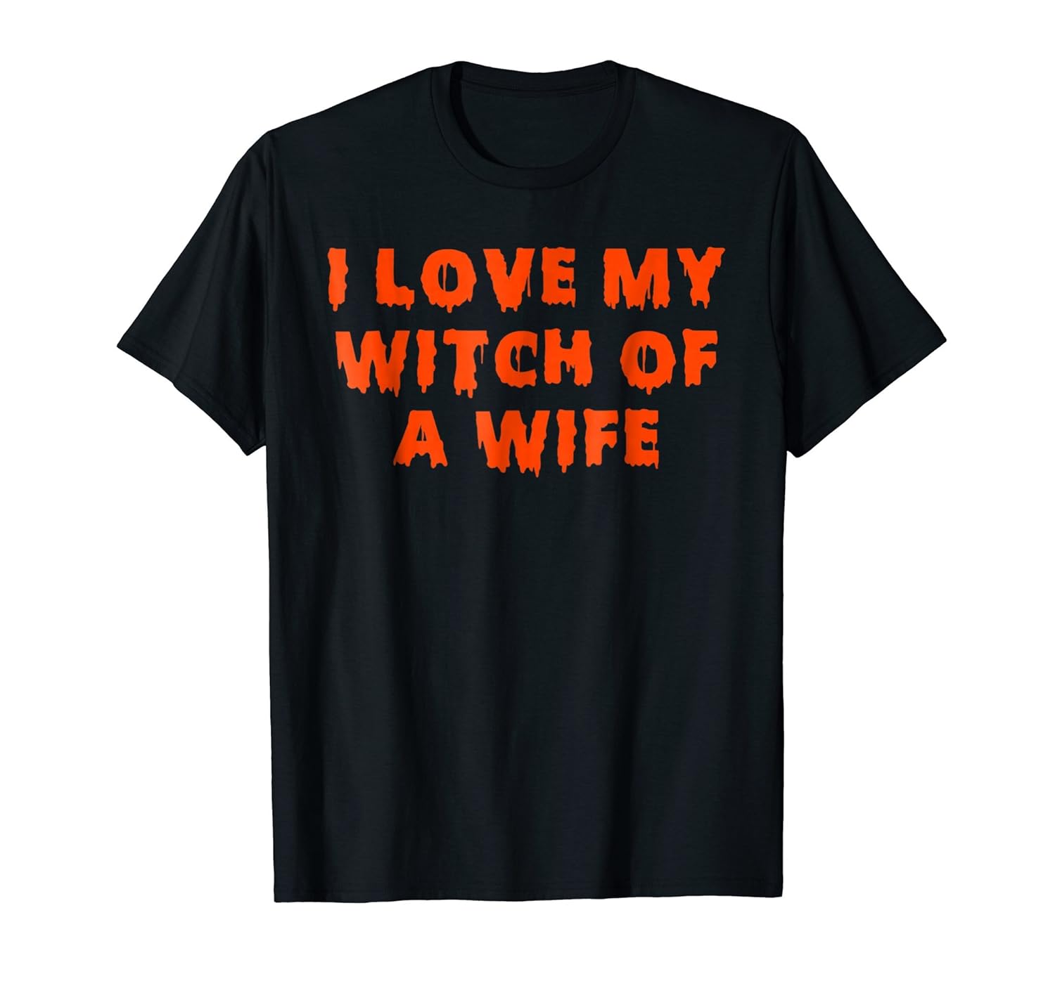 Solid colors: 100% Cotton; Heather Grey: 90% Cotton, 10% Polyester; All Other Heathers: 50% Cotton, 50% Polyester; Imported; Machine wash cold with like colors, dry low heat; Halloween Couples Costumes, Featuring this funny I Love My Witch of a Wife Halloween quote T Shirt, great for matching couples costumes, for men, fiances, husbands or girls; Matching Halloween Costumes for Couples, Adults, These matching T shirts are great to go with I Love My Monster of a Husband tee, click on Halloween Couples Costumes Co. to get your perfect costume party outfit this holiday; Lightweight, Classic fit, Double-needle sleeve and bottom hem