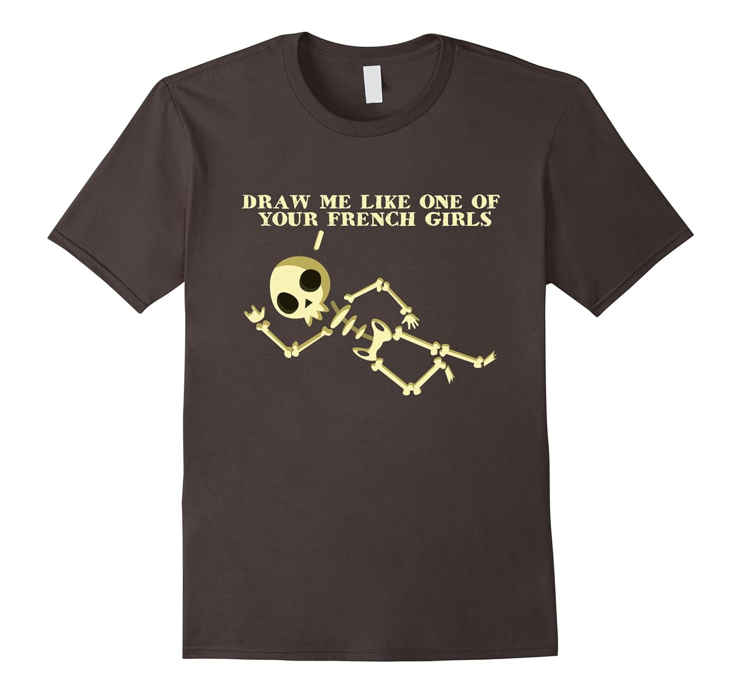 Solid colors: 100% Cotton; Heather Grey: 90% Cotton, 10% Polyester; All Other Heathers: 65% Cotton, 35% Polyester, Imported, Machine wash cold with like colors, dry low heat, Halloween Draw Me Like One of Your French Girls T-Shirt, Funny skeleton posing for a drawing design, Lightweight, Classic fit, Double-needle sleeve and bottom hem
