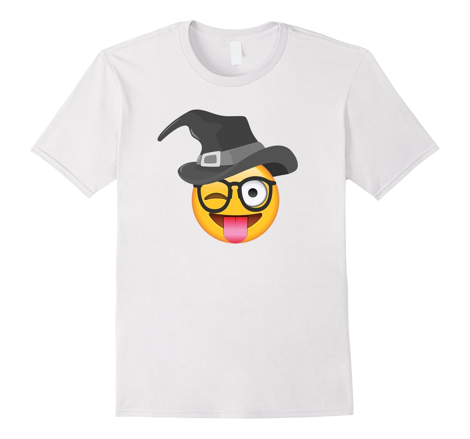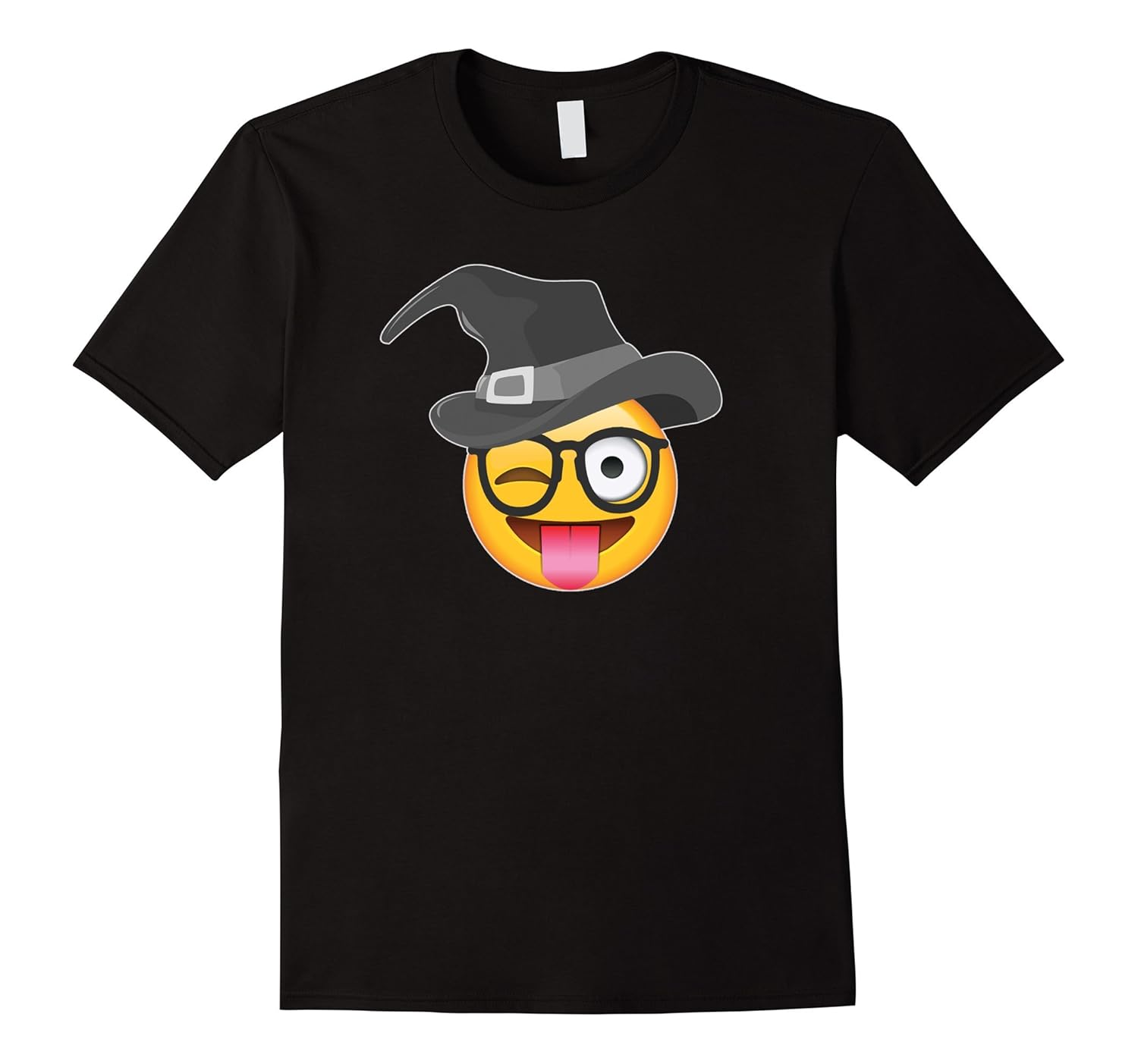 Solid colors: 100% Cotton; Heather Grey: 90% Cotton, 10% Polyester; All Other Heathers: 65% Cotton, 35% Polyester, Imported, Machine wash cold with like colors, dry low heat, Halloween Emoji T shirt, Tongue Wink Emoji, Witch Emoji, Emoji With Hat and Glases, Funny Emoticon Shirt, Perfect costume tee for men, women, teens, and kids!, Lightweight, Classic fit, Double-needle sleeve and bottom hem