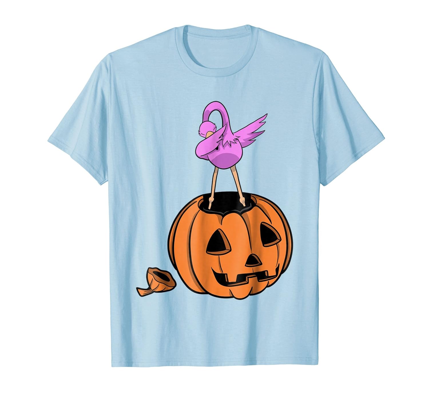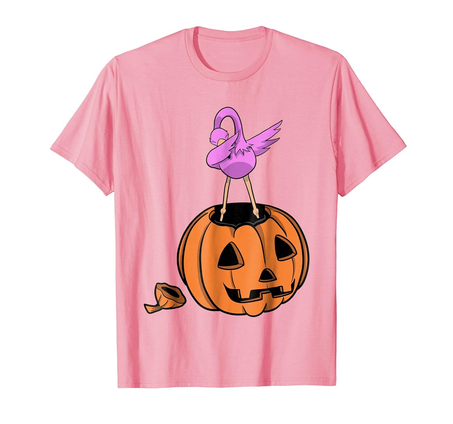 Solid colors: 100% Cotton; Heather Grey: 90% Cotton, 10% Polyester; All Other Heathers: 50% Cotton, 50% Polyester; Imported; Machine wash cold with like colors, dry low heat; Great looking unique dabbing Halloween Flamingo shirt. This Tee features a funny design showing a Halloween Flamingo doing the famous dab dance pose in a pumpkin. Makes great gift.; Lightweight, Classic fit, Double-needle sleeve and bottom hem
