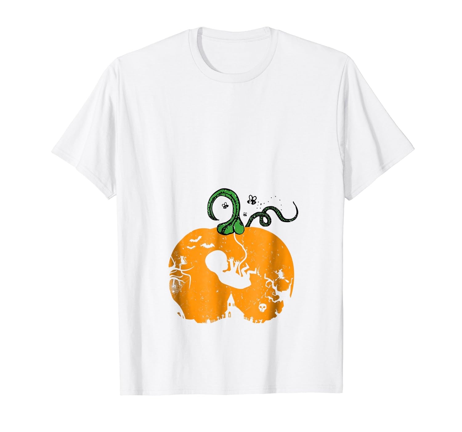 Solid colors: 100% Cotton; Heather Grey: 90% Cotton, 10% Polyester; All Other Heathers: 50% Cotton, 50% Polyester; Imported; Machine wash cold with like colors, dry low heat; Are you (or your wife / one of your friends) expecting a baby around October 31 or later? This funny halloween pumpkin shirt for pregnant women is a great choice as halloween costume then! Wear it for your halloween party, baby shower or anytime.; This halloween pregnancy announcement tee features a baby, zombies, a witch, cats, bats and scary stuff inside a creepy cimetery. Great halloween gift for pregnant woman.; Lightweight, Classic fit, Double-needle sleeve and bottom hem