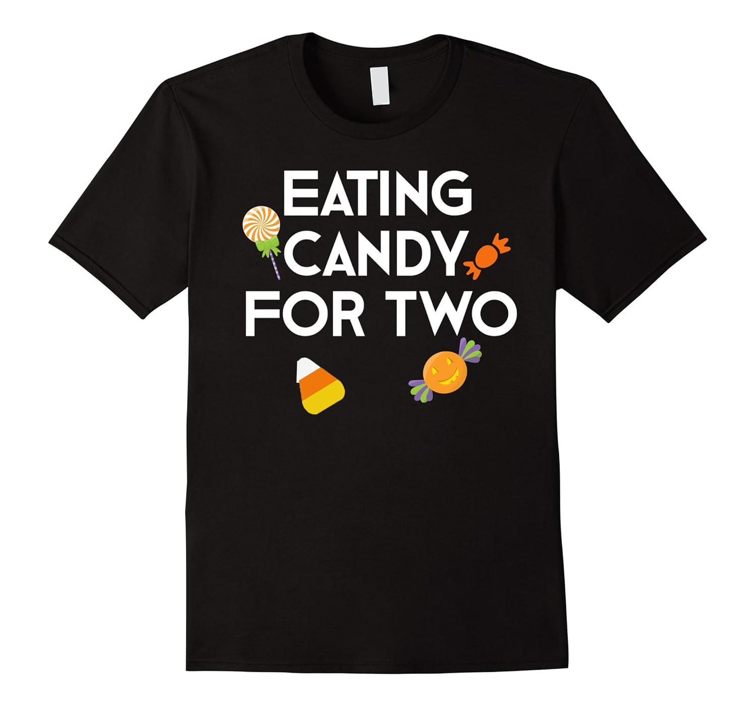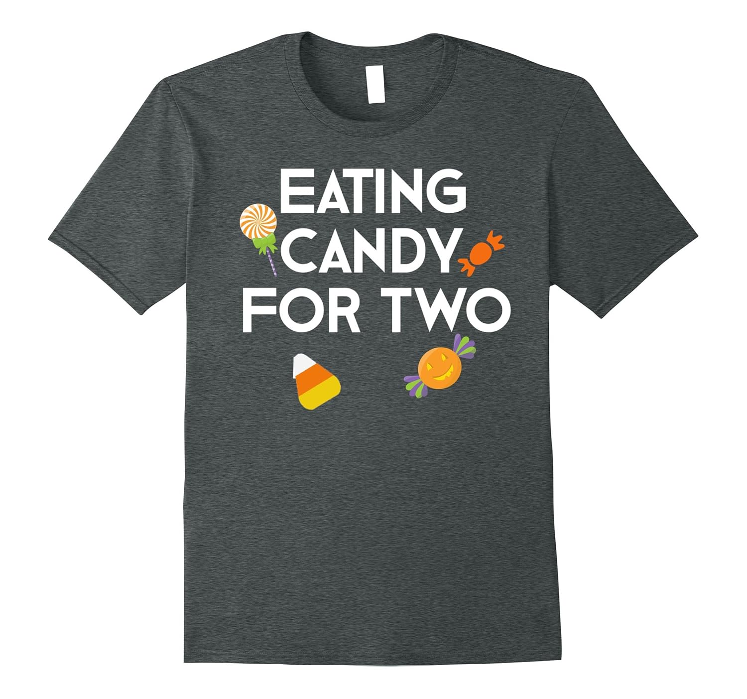 Solid colors: 100% Cotton; Heather Grey: 90% Cotton, 10% Polyester; All Other Heathers: 65% Cotton, 35% Polyester, Imported, Machine wash cold with like colors, dry low heat, Funny Halloween Pregnancy Announcement t-shirt for pregnant women and moms. This cute pregnancy announcement shirt for expecting moms says, Eating Candy for Two. Wear this t-shirt to announce your pregnancy during Halloween, Christmas, or Thanksgiving. This funny Halloween Pregnancy Announcement shirt makes a great gift for pregnant women, expecting moms, your girlfriend, wife, sister, friend, or co-worker, on their birthday, gender announcement party, baby shower or sprinkle, anniversary, or Christmas. Lightweight, Classic fit, Double-needle sleeve and bottom hem