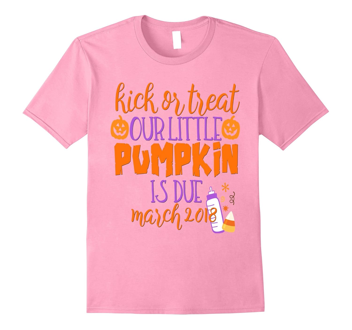 Solid colors: 100% Cotton; Heather Grey: 90% Cotton, 10% Polyester; All Other Heathers: 65% Cotton, 35% Polyester, Imported, Machine wash cold with like colors, dry low heat, Celebrate the Halloween with this fun T-shirt for Pregnant Mummy Mom and Dad! Wear during your Pregnancy this October 31st and celebrate the arrival of Your Little Monster in this cute tee! A Spooky Cute way to share the big news!, Kick or Treat Our Little Pumpkin Is Due Mom or Dad tee with Baby”s Due Date Included with baby footprints. Baby Girl Boy Daughter Son Arrival Baby Shower Gift Pregnancy Announcement Idea Gender Reveal Party present, Lightweight, Classic fit, Double-needle sleeve and bottom hem