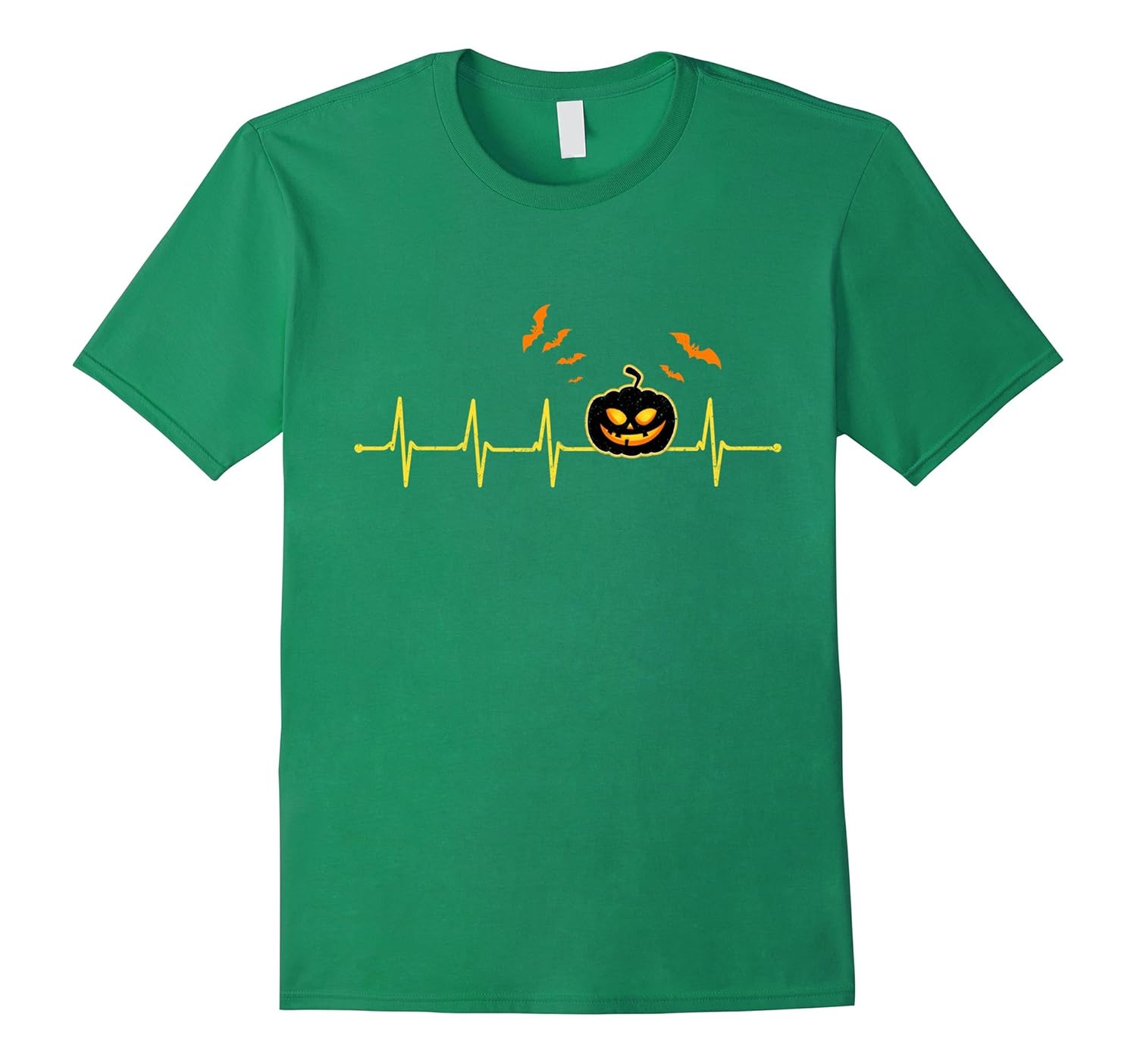 Solid colors: 100% Cotton; Heather Grey: 90% Cotton, 10% Polyester; All Other Heathers: 65% Cotton, 35% Polyester, Imported, Machine wash cold with like colors, dry low heat, halloween pumpkin heartbeat shirt, pumpkin halloween shirt, Lightweight, Classic fit, Double-needle sleeve and bottom hem