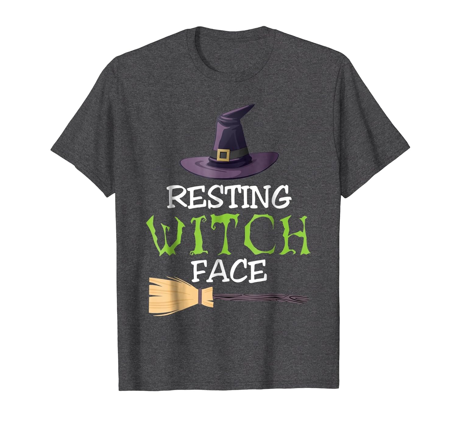 Solid colors: 100% Cotton; Heather Grey: 90% Cotton, 10% Polyester; All Other Heathers: 50% Cotton, 50% Polyester; Imported; Machine wash cold with like colors, dry low heat; The perfect t-shirt for Halloween, holiday party, and trick or treat party. Can be worn by witchcraft lovers and magical spells fanatics women, girls, and teens on November 1, Halloween party, costume party with your broomstick and a witch hat on.; Resting Witch Face is the funny tee to wear on Halloween party.Share your love about the witch, broomstick, witch hat printed on this tee.The perfect t-shirt for everyone with a resting witch face to show.; Lightweight, Classic fit, Double-needle sleeve and bottom hem