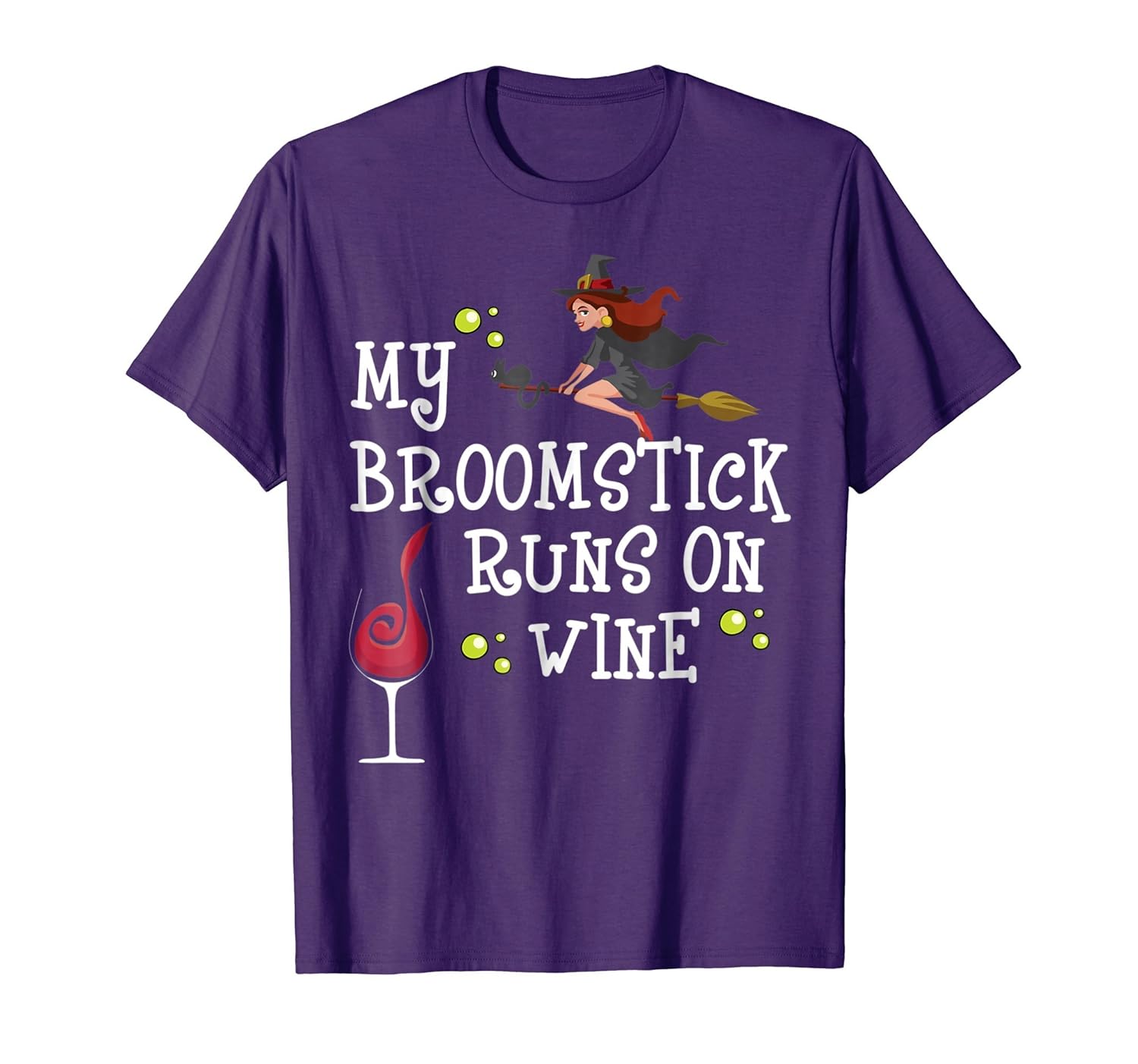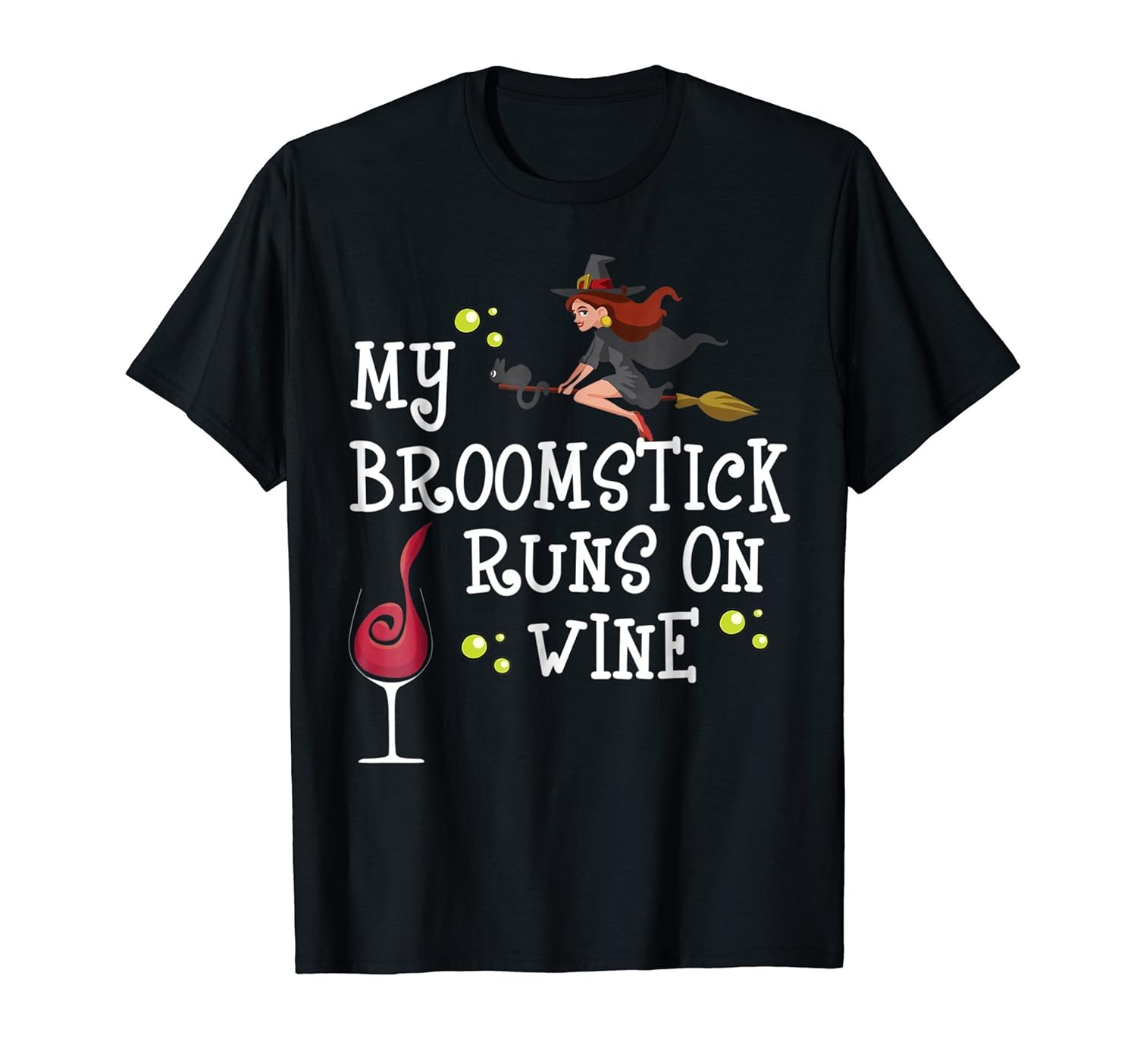 Solid colors: 100% Cotton; Heather Grey: 90% Cotton, 10% Polyester; All Other Heathers: 50% Cotton, 50% Polyester; Imported; Machine wash cold with like colors, dry low heat; Perfect tee for Halloween, holiday party and witchcraft lovers and wine addicts. Can be worn by men, women, wife, husband, grandparents, uncles, girls, boys, and kids on November 1, Halloween party, costume party with your broomstick and wine to drink on.; My Broomstick Runs On Wine is the funny tee to wear on Halloween party.Share your fondness about the witch, broomstick and the wine printed on this tee.The perfect t-shirt for everyone who loves wine.; Lightweight, Classic fit, Double-needle sleeve and bottom hem