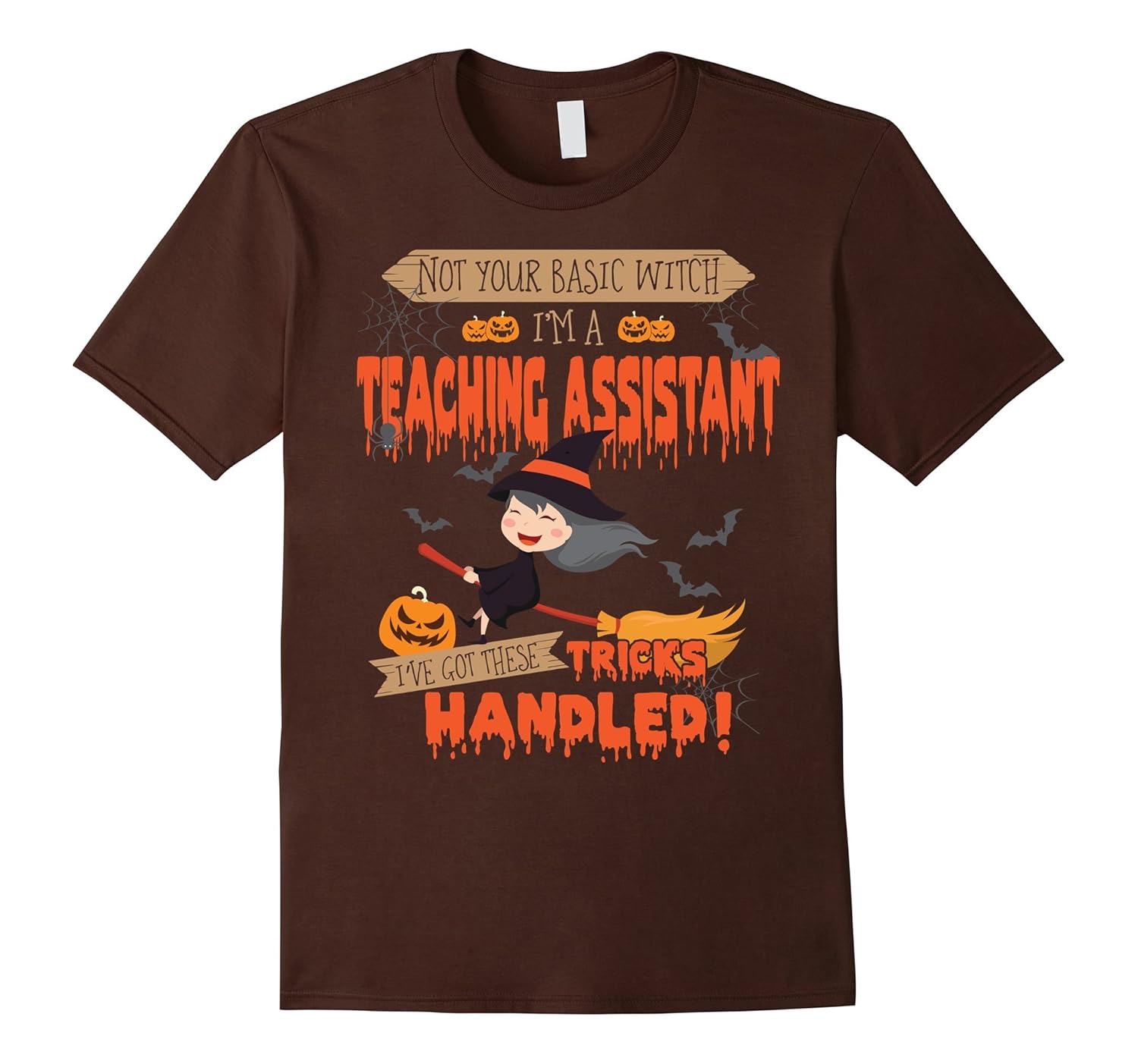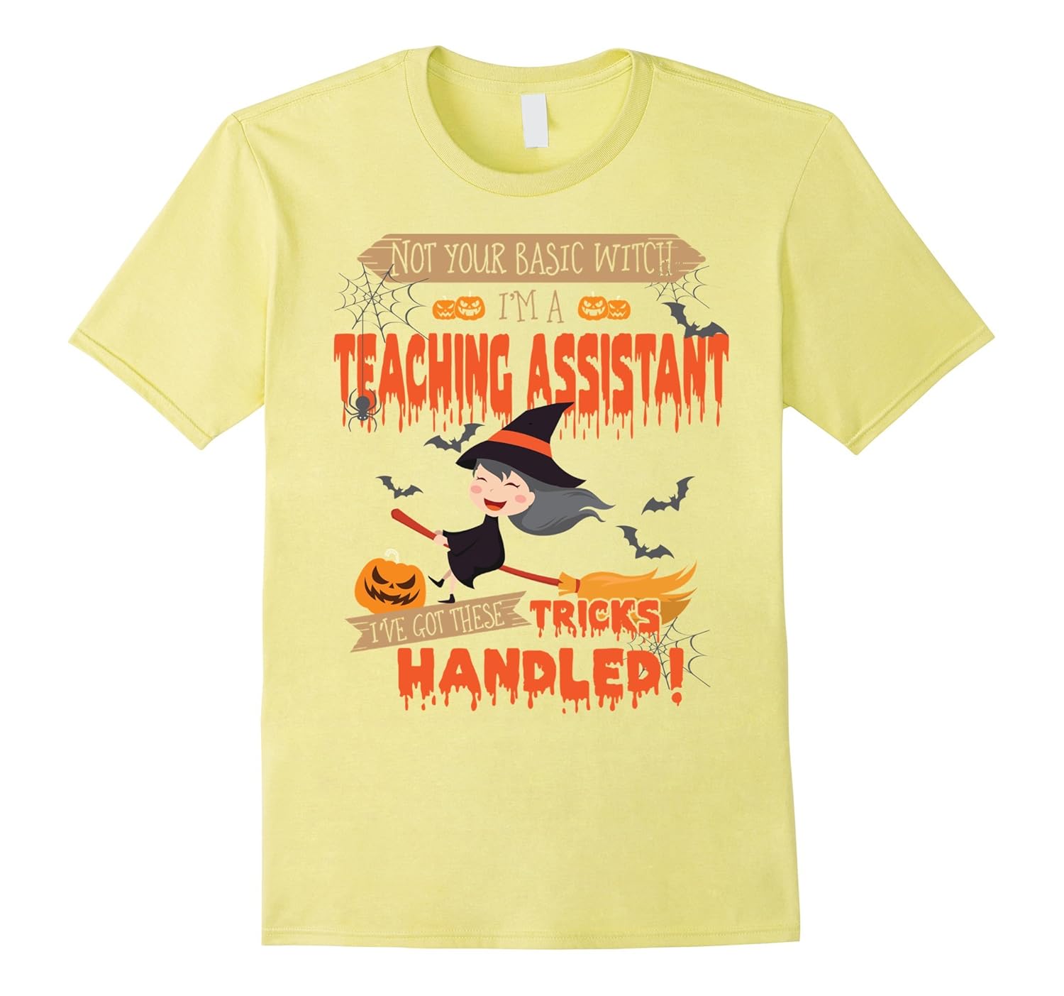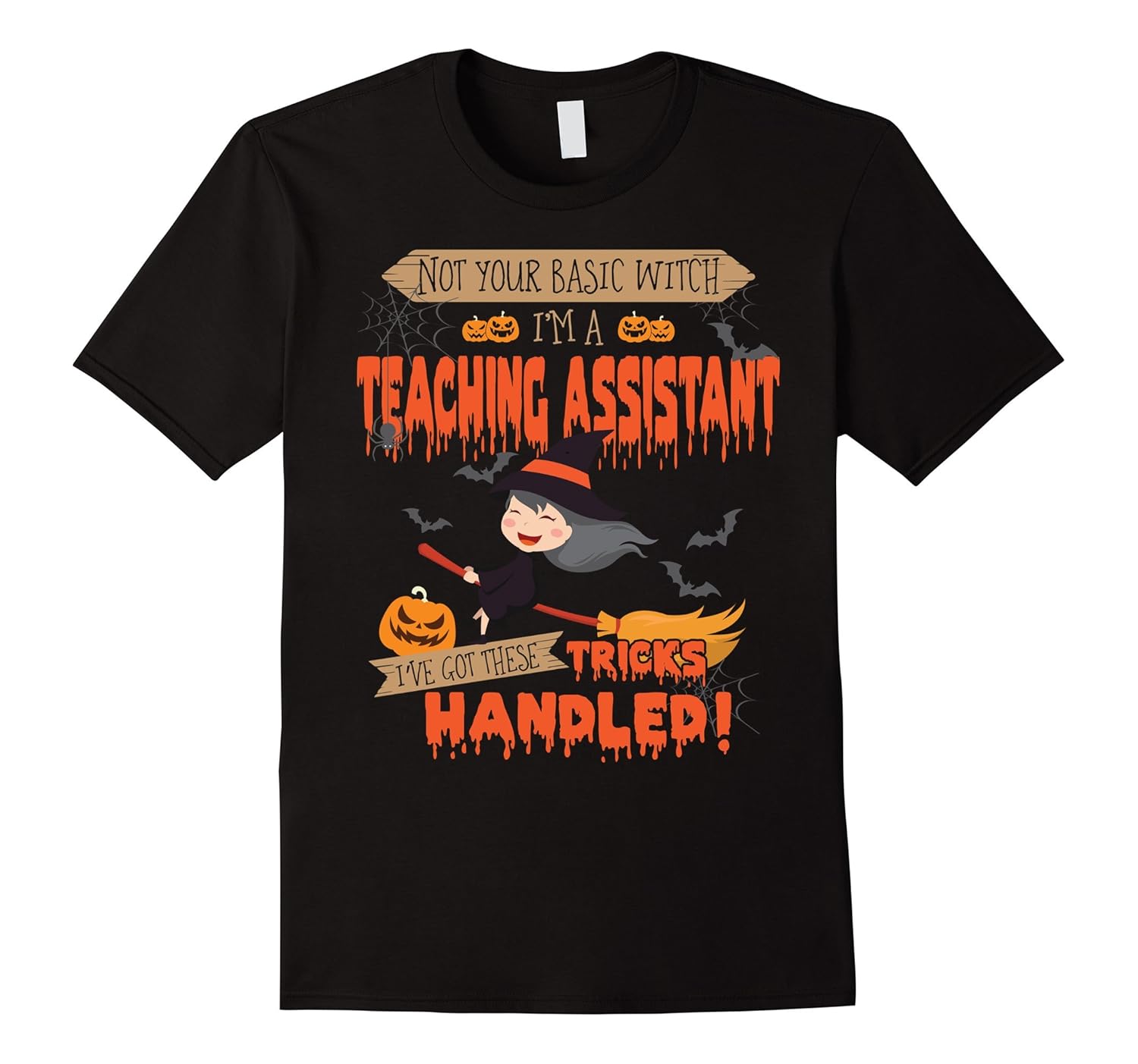 Solid colors: 100% Cotton; Heather Grey: 90% Cotton, 10% Polyester; All Other Heathers: 65% Cotton, 35% Polyester; Imported; Machine wash cold with like colors, dry low heat; Not your basic witch Im a Teacher Assistant Ive got these tricks handled shirts are perfect to wear as a scary halloween costume, halloween t shirt, halloween shirt, halloween tee, halloween gift, halloween day t shirt, halloween day gift; Funny halloween gift, halloween funny. Teacher Assistant t shirt, Teacher Assistant shirt, Teacher Assistant tee, Teacher Assistant gift. This is a great gift for Teacher Assistant on special day: Christmas day, birthday, Holiday, Party, Halloweens day, e; Lightweight, Classic fit, Double-needle sleeve and bottom hem