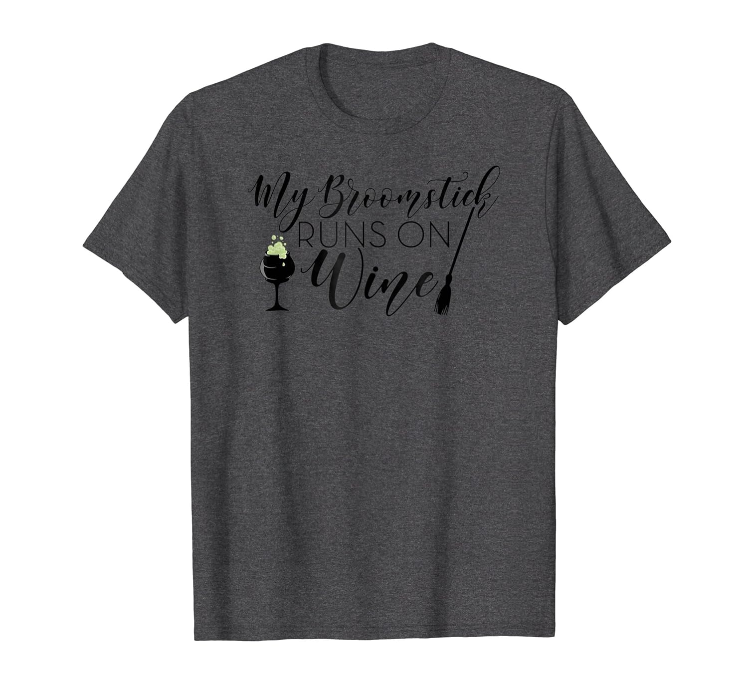 Solid colors: 100% Cotton; Heather Grey: 90% Cotton, 10% Polyester; All Other Heathers: 50% Cotton, 50% Polyester; Imported; Machine wash cold with like colors, dry low heat; Lets be honest, Halloween is a perfect opportunity to drink a little champagne! Or any other wine! If you and your girls love Trick or Treating, or Scary parties, this is a great shirt or last minute costume! Makes a great gift idea for any Wine Lover!; This Funny Halloween Tshirt My Broomstick Runs on Wine Graphic Tee makes a great gift for Moms, Sisters, Aunts, Grandmas, Stepmoms, and anyone dealing with children! While the kids are going to Trick or Treat for candy, the Moms should drink!; Lightweight, Classic fit, Double-needle sleeve and bottom hem