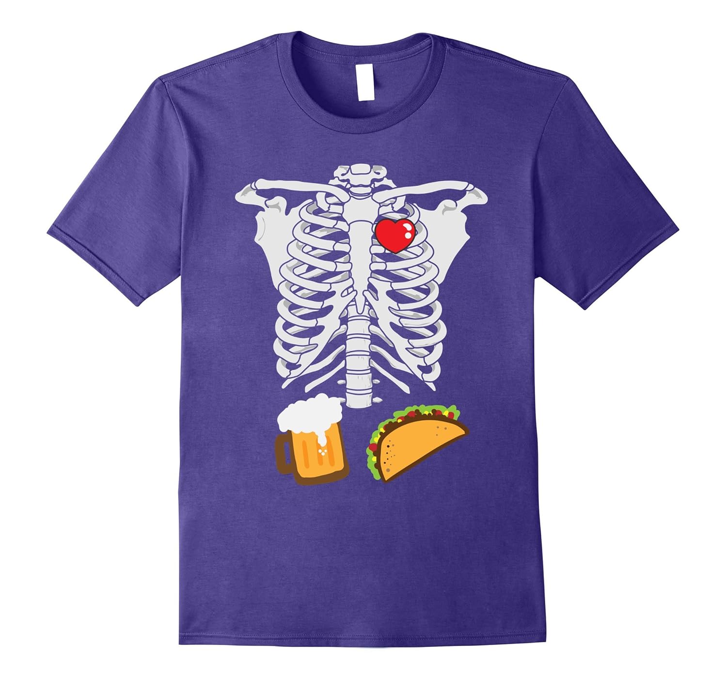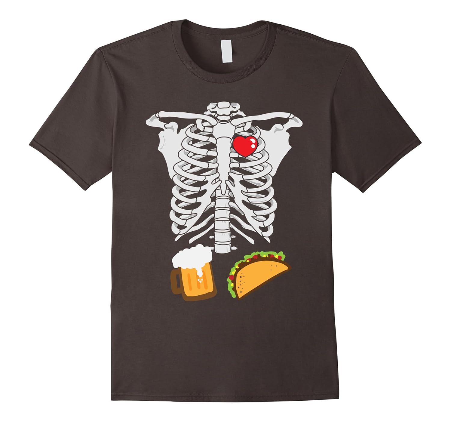 Solid colors: 100% Cotton; Heather Grey: 90% Cotton, 10% Polyester; All Other Heathers: 50% Cotton, 50% Polyester; Imported; Machine wash cold with like colors, dry low heat; Halloween Tacos Beer Skeleton Ribcage Funny T-Shirt; Unique Apparel clothing gift idea for mom; Lightweight, Classic fit, Double-needle sleeve and bottom hem