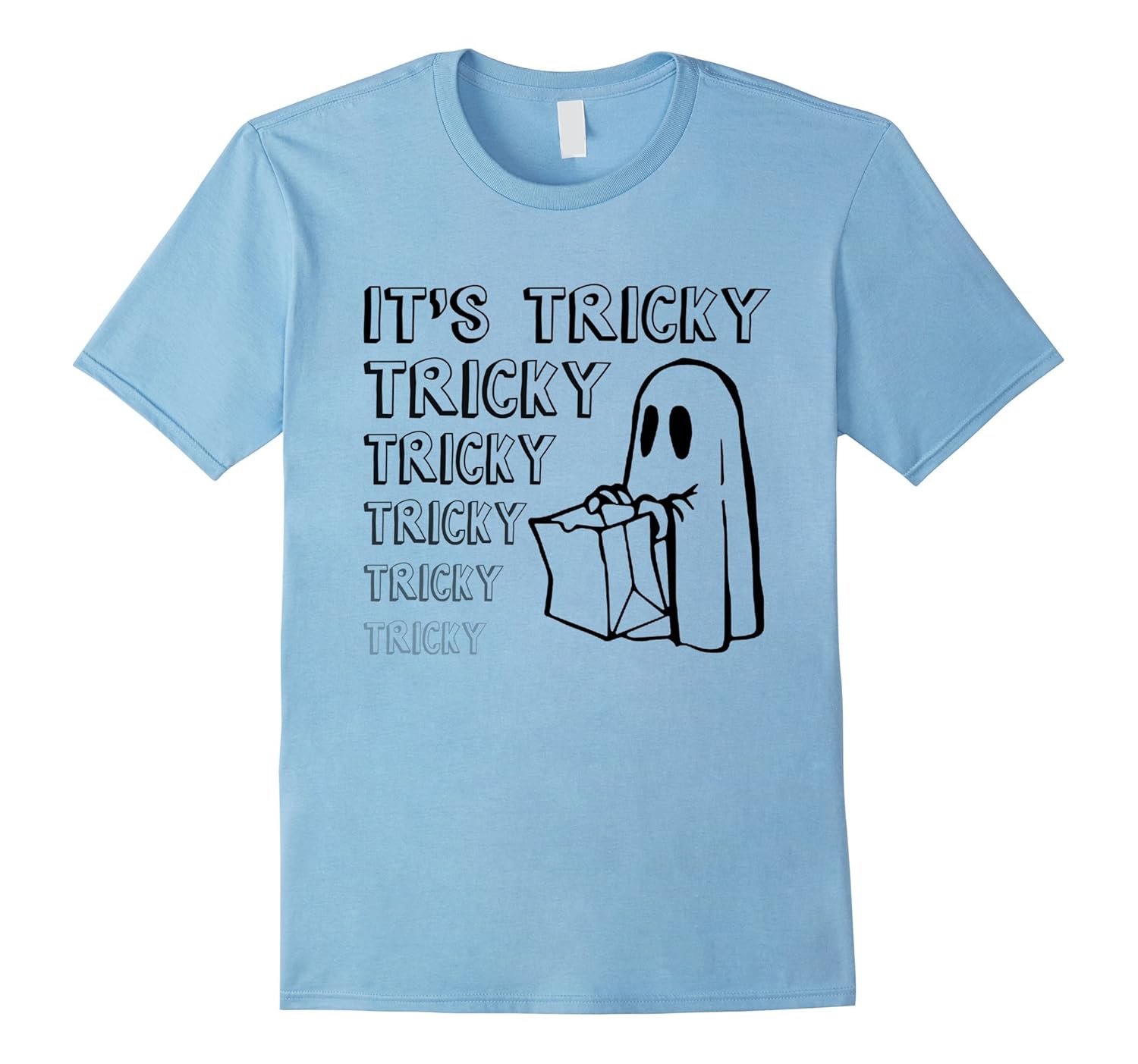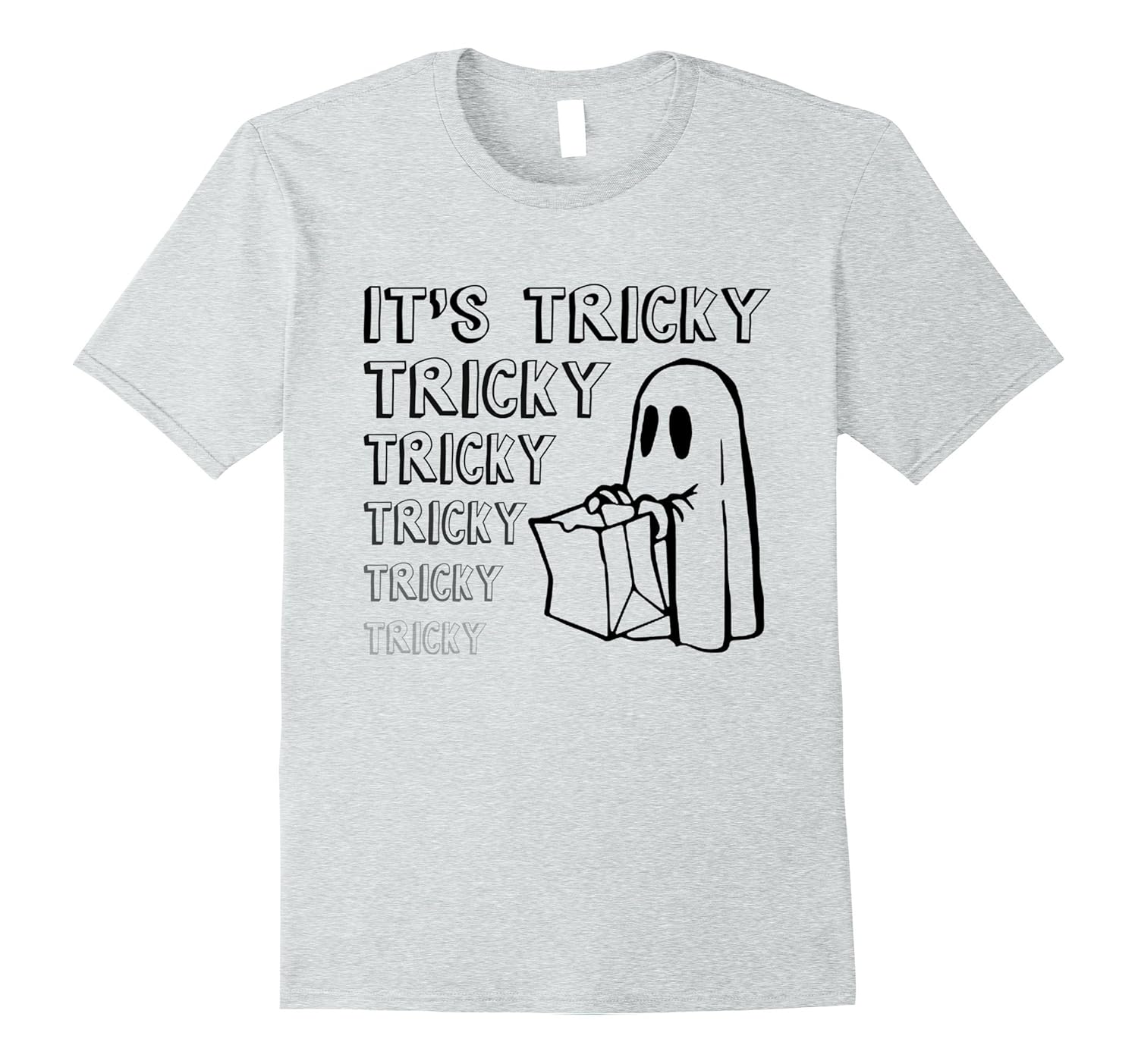 Solid colors: 100% Cotton; Heather Grey: 90% Cotton, 10% Polyester; All Other Heathers: 65% Cotton, 35% Polyester, Imported, Machine wash cold with like colors, dry low heat, TRICKY Halloween tshirt gift for parents, friends, grandparents, beloved on halloween day, tricky halloween t-shirt, tricky tricky t-shirt, awesome ghost halloween t-shirt, its tricky halloween shirt, tricky halloween gift shirt, Lightweight, Classic fit, Double-needle sleeve and bottom hem