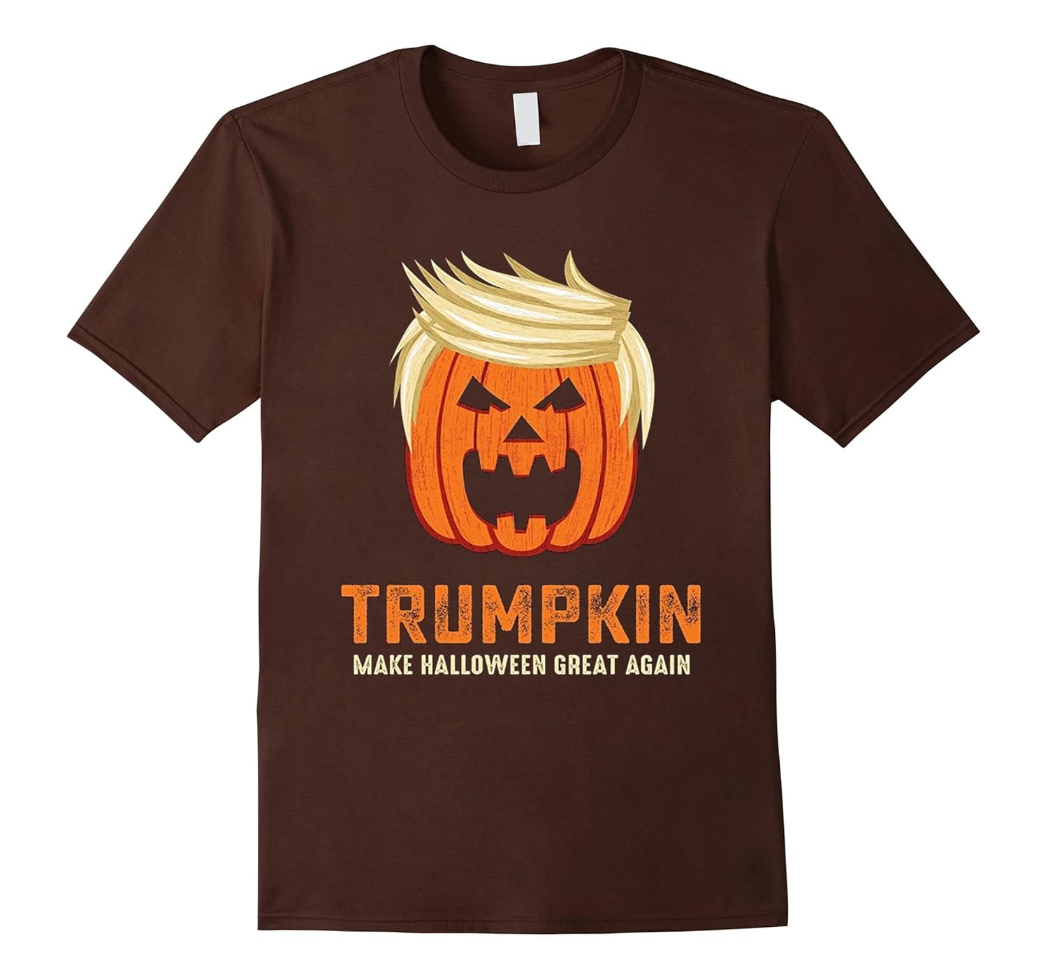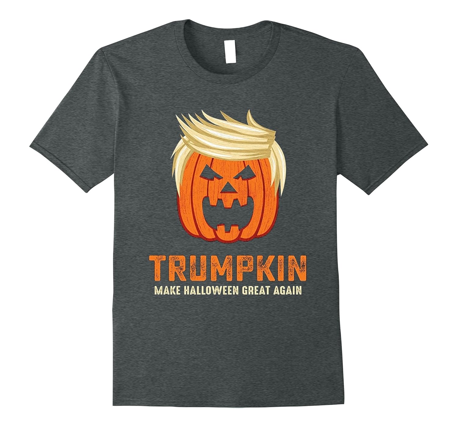 Solid colors: 100% Cotton; Heather Grey: 90% Cotton, 10% Polyester; All Other Heathers: 65% Cotton, 35% Polyester, Imported, Machine wash cold with like colors, dry low heat, “Trumpkin Make Halloween Great Again” Jack-O”-Lantern carved pumpkin with corn husk hair. Humorous Trump tee shirt, cool Halloween costume. This Trumpkin Shirt runs small, please size up for a comfortable fit. This political joke tee shirt is perfect for a costume party, trick or treat, or haunted house. Grab it as a gift for that boo who loves pumpkin season. Perfect for men, women and kids. Lightweight, Classic fit, Double-needle sleeve and bottom hem
