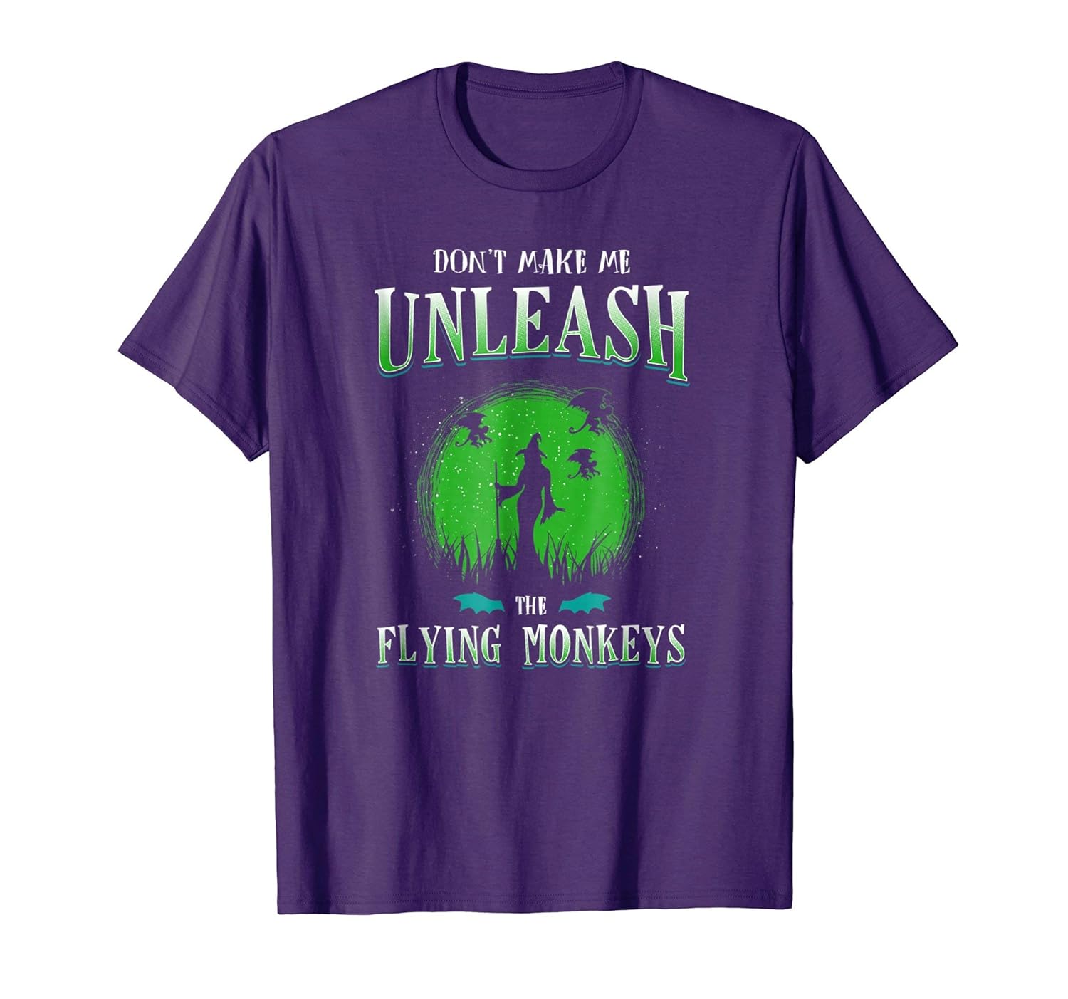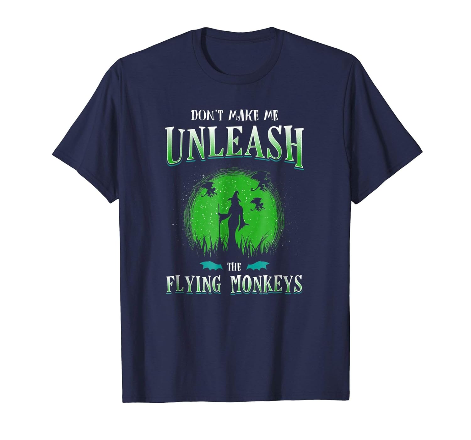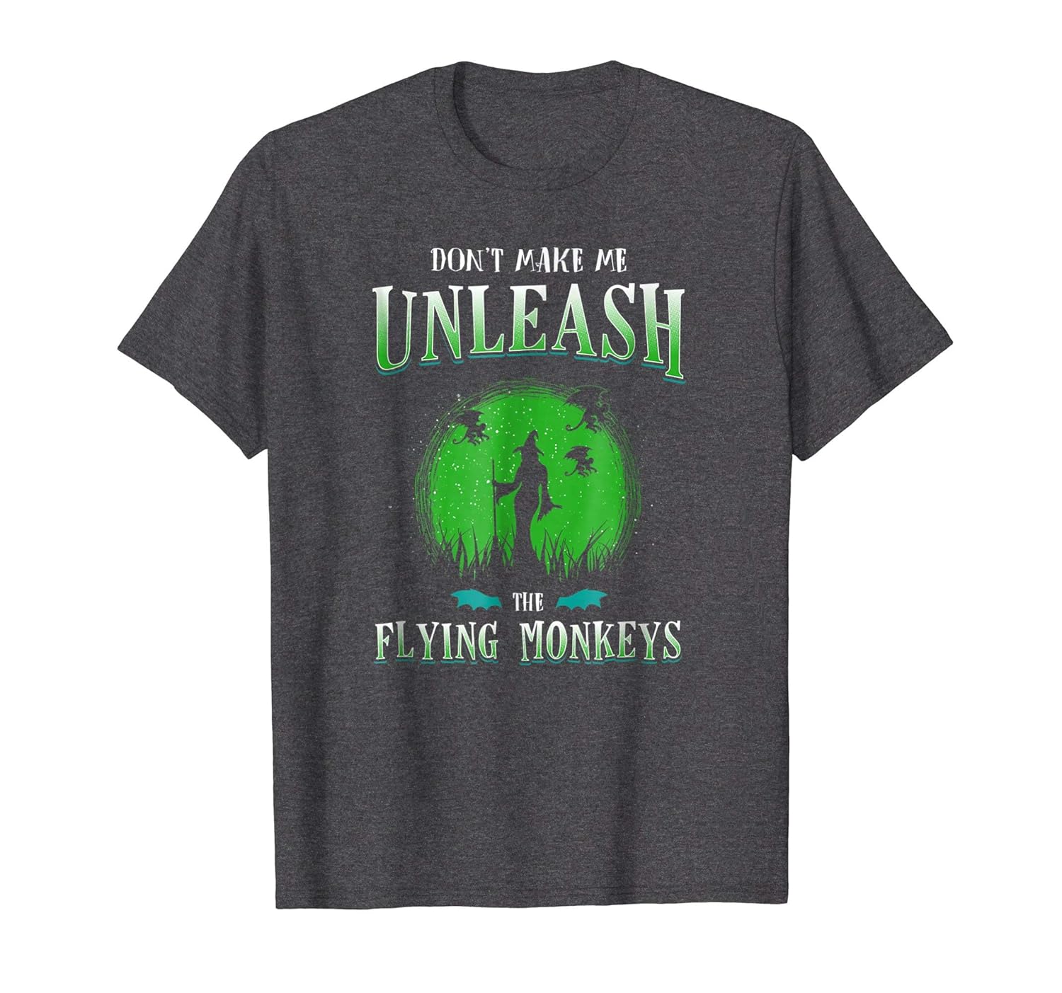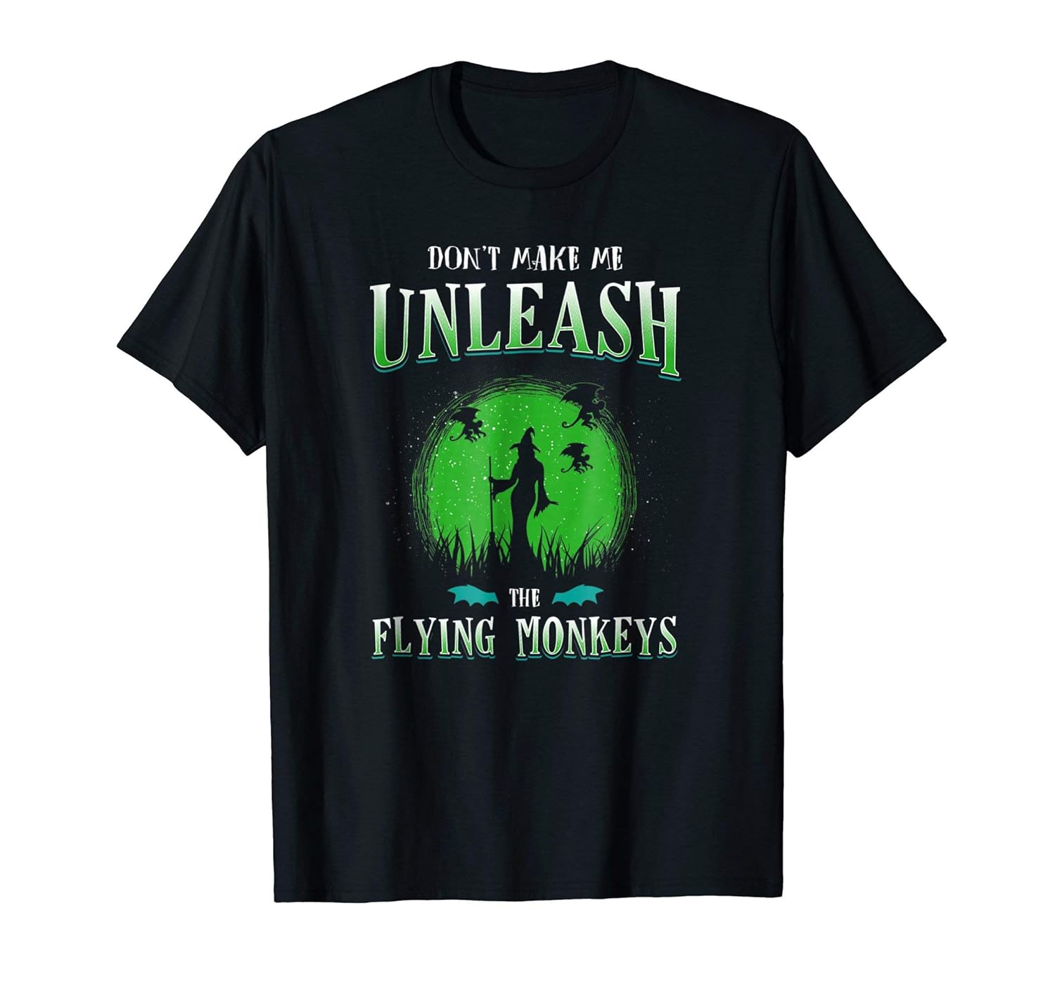 Solid colors: 100% Cotton; Heather Grey: 90% Cotton, 10% Polyester; All Other Heathers: 50% Cotton, 50% Polyester; Imported; Machine wash cold with like colors, dry low heat; Halloween Witchy mom t-shirt or spooky teacher tee. Dont Make Me Unleash the Flying Monkeys! Mama, grandma, sister or cousins will love this cute witches shirt. A wicked Happy Halloween (or laughs year round)!; Witch shirt with Flying Monkeys graphic tee. Funny Halloween joke t-shirt!; Lightweight, Classic fit, Double-needle sleeve and bottom hem