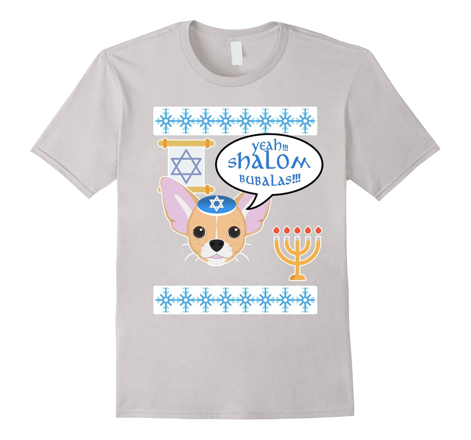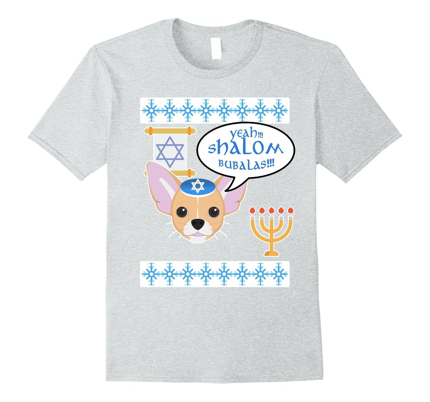 Solid colors: 100% Cotton; Heather Grey: 90% Cotton, 10% Polyester; All Other Heathers: 65% Cotton, 35% Polyester; Imported; Machine wash cold with like colors, dry low heat; Shalom Bubalas! Show your Jewish Pride and laugh along with this Dog Lovers novelty T-Shirt for Men Andamp; Women.; TShirt features a Chihuahua Dog with a Kippah, Menorah Andamp; Torah – Great fun for Holiday/Yontif, such as Shabbat, Simchat, Chanukah, Purim, Pesach, Seder – or even Halloween and Thanksgiving.; Lightweight, Classic fit, Double-needle sleeve and bottom hem