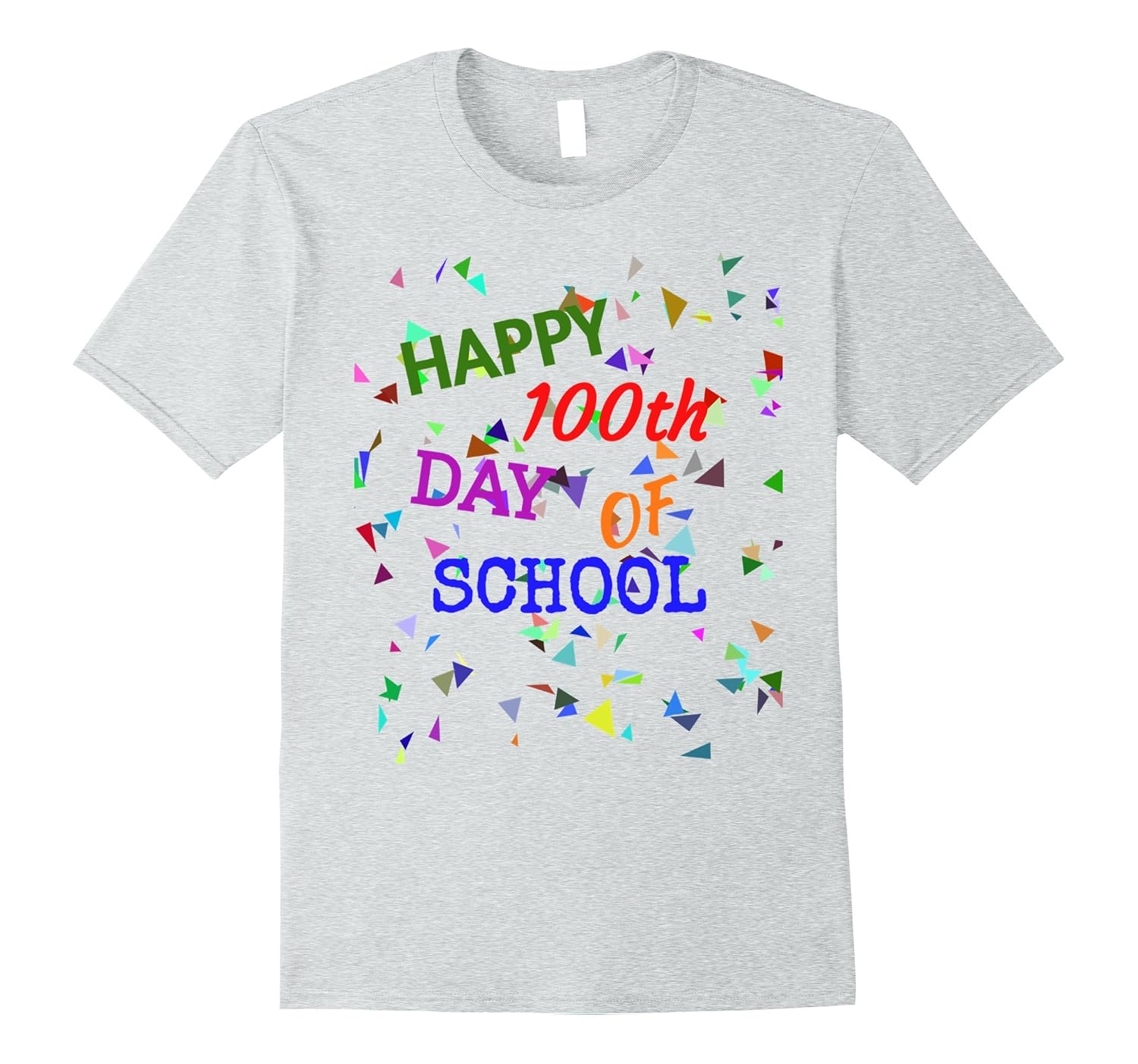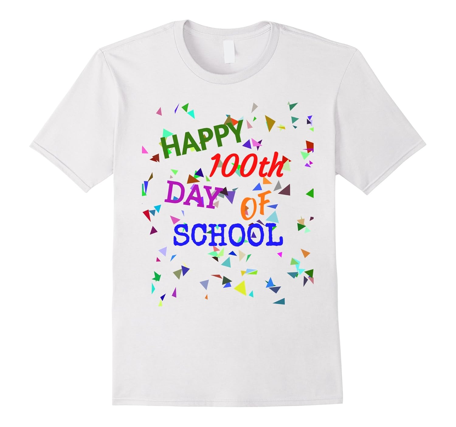 Solid colors: 100% Cotton; Heather Grey: 90% Cotton, 10% Polyester; All Other Heathers: 65% Cotton, 35% Polyester; Imported; Machine wash cold with like colors, dry low heat; 100th day T shirt celebrate 100th day with colorful confetti Tee. Great shirt for Elementary school teachers, students boys and girls, school staff, principal and parents. If you happily marked 100 days for school then this 100th day shirt is for you.; Cute and Funny 100th day T shirt for students and adults with a sense of beauty. Happy 100th day shirt goes well with 100 days chart poster. Hundred Days of School T-Shirt is fun popular school tradition tee; Lightweight, Classic fit, Double-needle sleeve and bottom hem