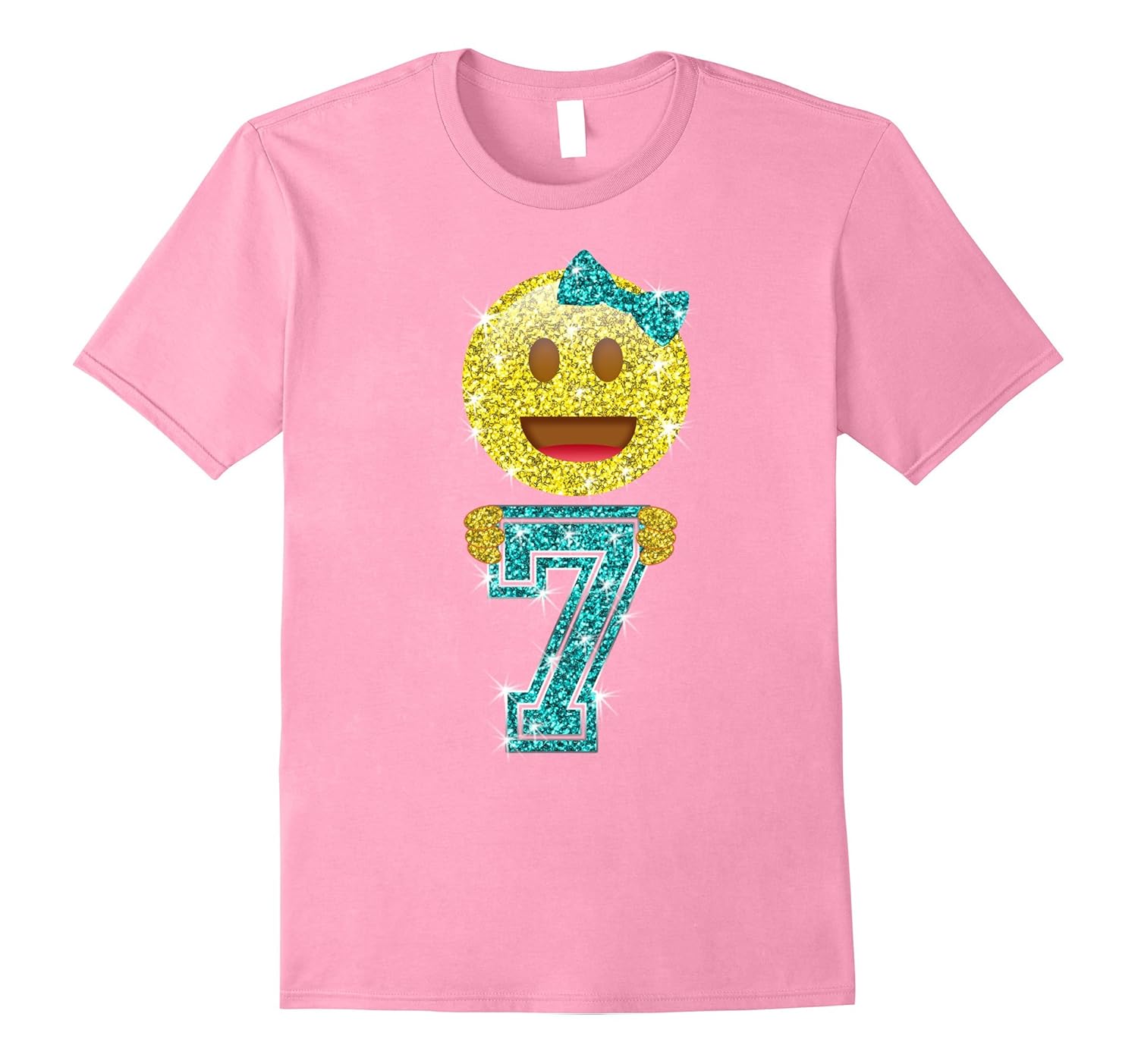 Solid colors: 100% Cotton; Heather Grey: 90% Cotton, 10% Polyester; All Other Heathers: 65% Cotton, 35% Polyester, Imported, Machine wash cold with like colors, dry low heat, This cute and funny tshirt is great for seven year old girls who love emojis. The emoji is wearing a bow and holding the number 7. Great idea for little girls. Lightweight, Classic fit, Double-needle sleeve and bottom hem