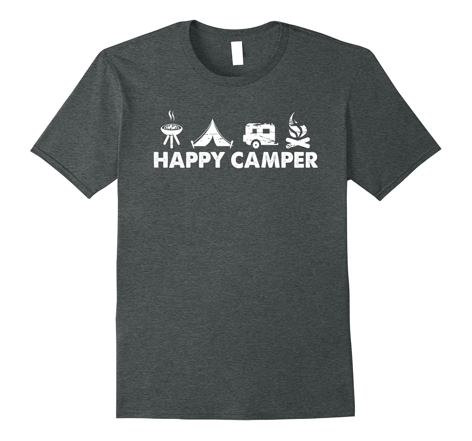 Solid colors: 100% Cotton; Heather Grey: 90% Cotton, 10% Polyester; All Other Heathers: 65% Cotton, 35% Polyester, Imported, Machine wash cold with like colors, dry low heat, Perfect Gift Idea for Men, Women and Kids who love to camp – Happy Camper TShirt. Awesome gift for your dad, brother, husband, boyfriend, son, daughter, youth, baby, child, uncle or nephew, girlfriend, sister, mom, mother, friends or family. Funny Retro Graphic Tee with print “Happy Camper”. Add this tshirt to your collection of camping accessories (tank top, mug, hat, hoodie, sweatshirt, pajamas, pillow, tent, flag and other stuff). Lightweight, Classic fit, Double-needle sleeve and bottom hem