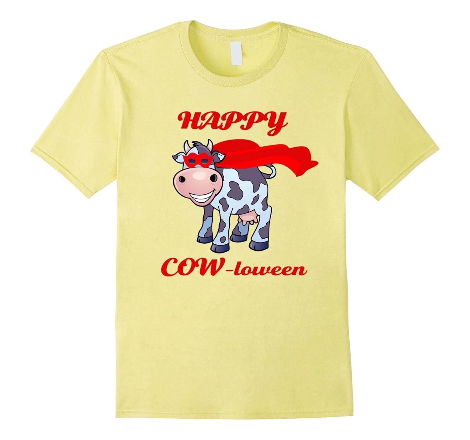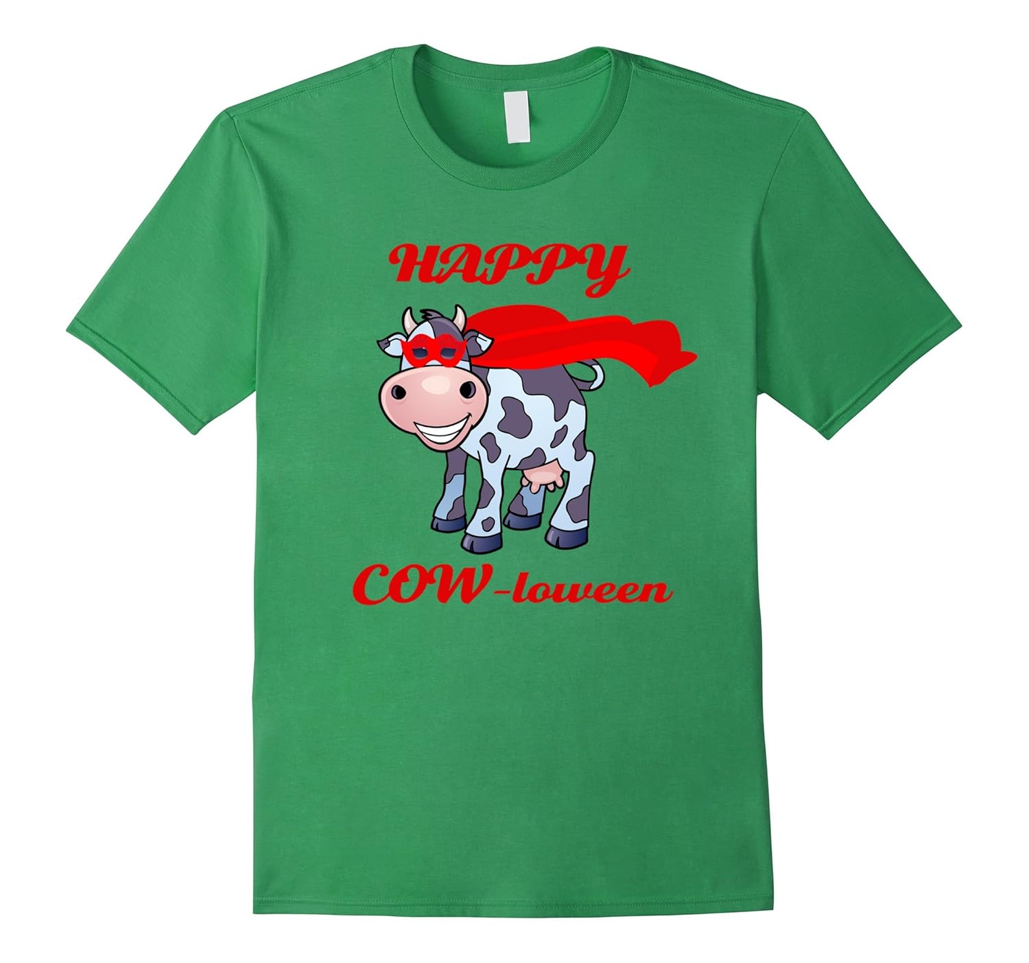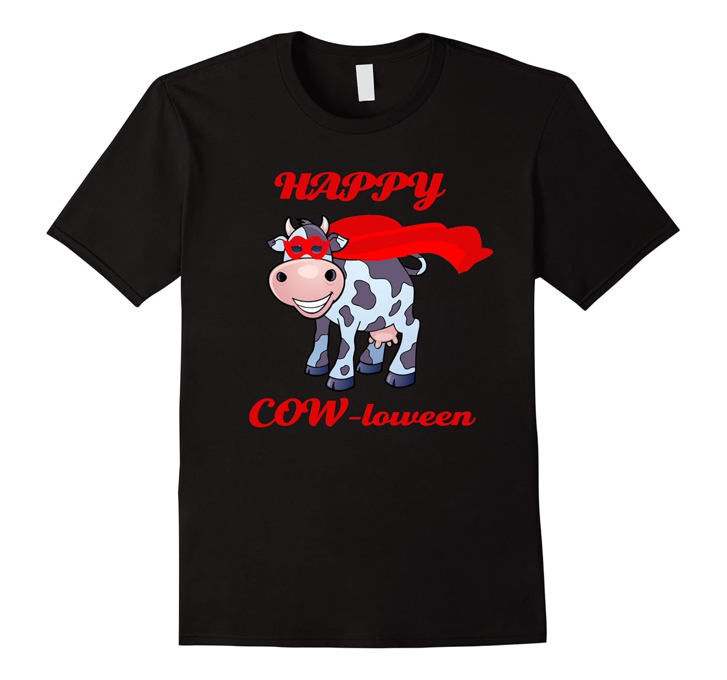 Solid colors: 100% Cotton; Heather Grey: 90% Cotton, 10% Polyester; All Other Heathers: 65% Cotton, 35% Polyester, Imported, Machine wash cold with like colors, dry low heat, Happy Cow-loween! Cow shirt for anyone who loves cows – men, women, boys, girls. If you love cows, cowboys, farms, animals, or puns, this shirt is for you. The shirt features a cow in a Halloween superhero costume, with a cape and mask. Super Cow. Perfect for Halloween, and as a present for your family or friends who love cows, bovines, farms, farmers, costumes, trick or treating, parties, and Halloween fun, Lightweight, Classic fit, Double-needle sleeve and bottom hem