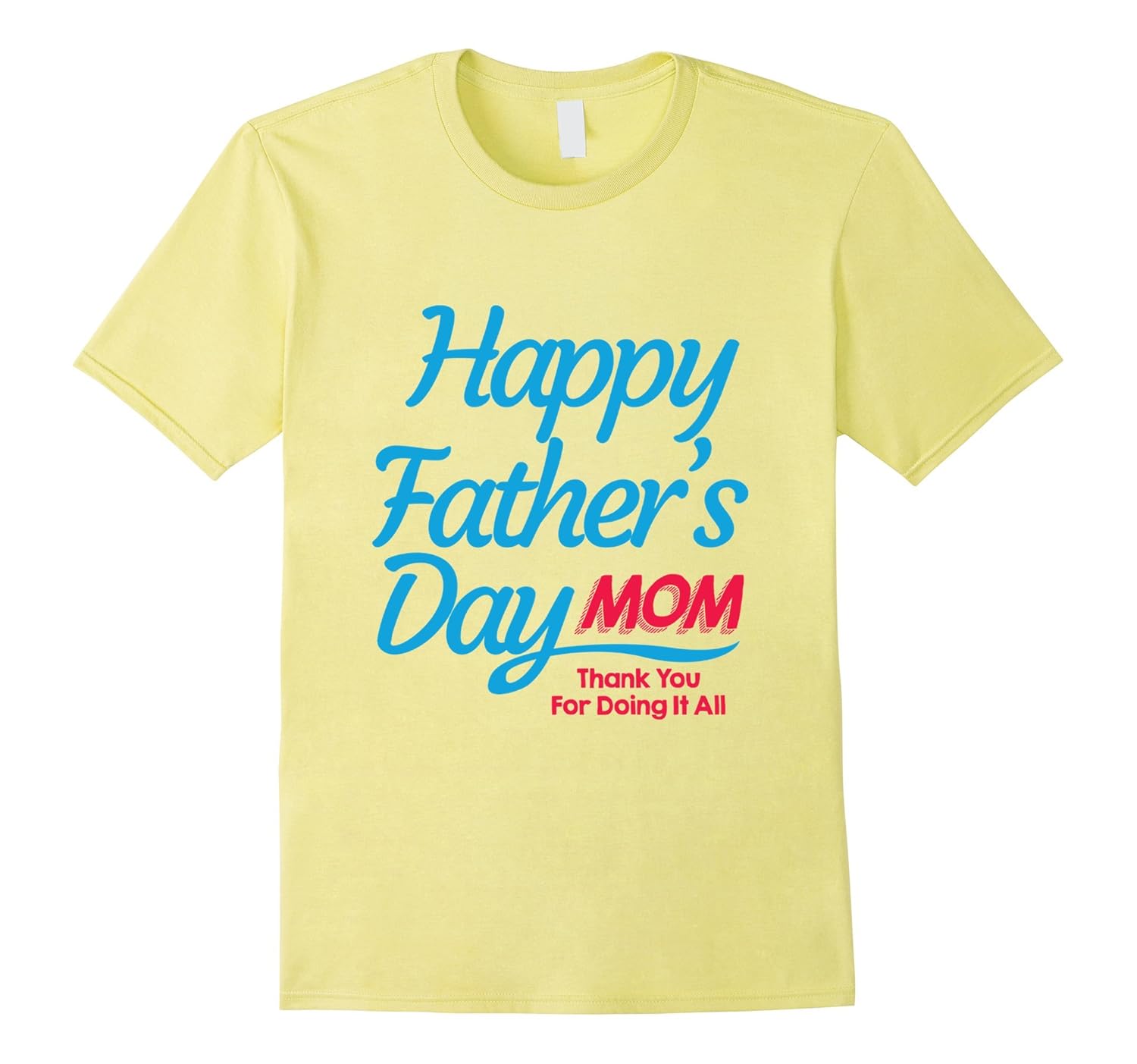 Solid colors: 100% Cotton; Heather Grey: 90% Cotton, 10% Polyester; All Other Heathers: 50% Cotton, 50% Polyester; Imported; Machine wash cold with like colors, dry low heat; Happy Fathers Day Mom, Thank You For Doing It All. For The Mother Who Has Held Down Being Both Mom And Dad In Your Life.; It Is Hard Enough To Be A Parent With One Role, But For That Mom That Does Both, She Needs To Be Appreciated For Doing It All.; Lightweight, Classic fit, Double-needle sleeve and bottom hem