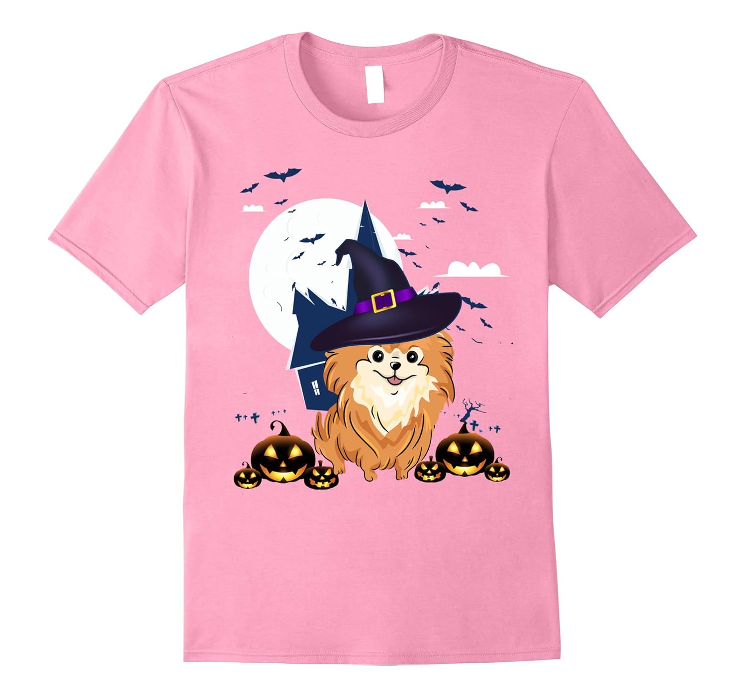 Solid colors: 100% Cotton; Heather Grey: 90% Cotton, 10% Polyester; All Other Heathers: 65% Cotton, 35% Polyester; Imported; Machine wash cold with like colors, dry low heat; Cute Halloween little witch dog t-shirt for those who love Pomeranian, dog, pet, puppy. Pomeranian dogs love everyone and this Halloween shirt makes a great Halloween party outfit for dog lovers or anyone in the whole family.; Best present for family, kids, soulmates, co-workers who are dog lovers on their birthday, Halloween, Thanksgiving, Christmas, anniversary or any occasion. Great for matching tee shirts for group or family to dress up for Dog themed party.; Lightweight, Classic fit, Double-needle sleeve and bottom hem