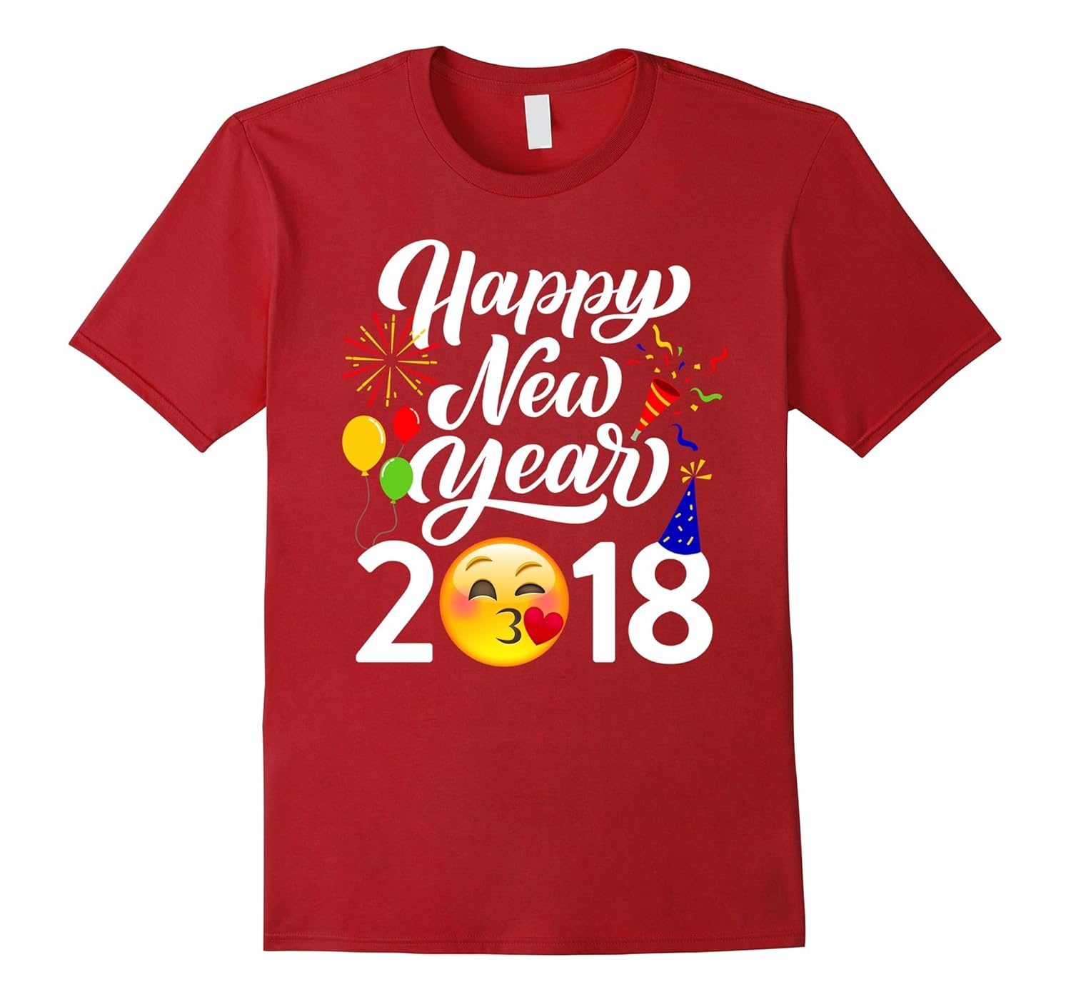 Happy New Year 2018 Face Blowing a Kiss Emoji T-Shirt-ANZ