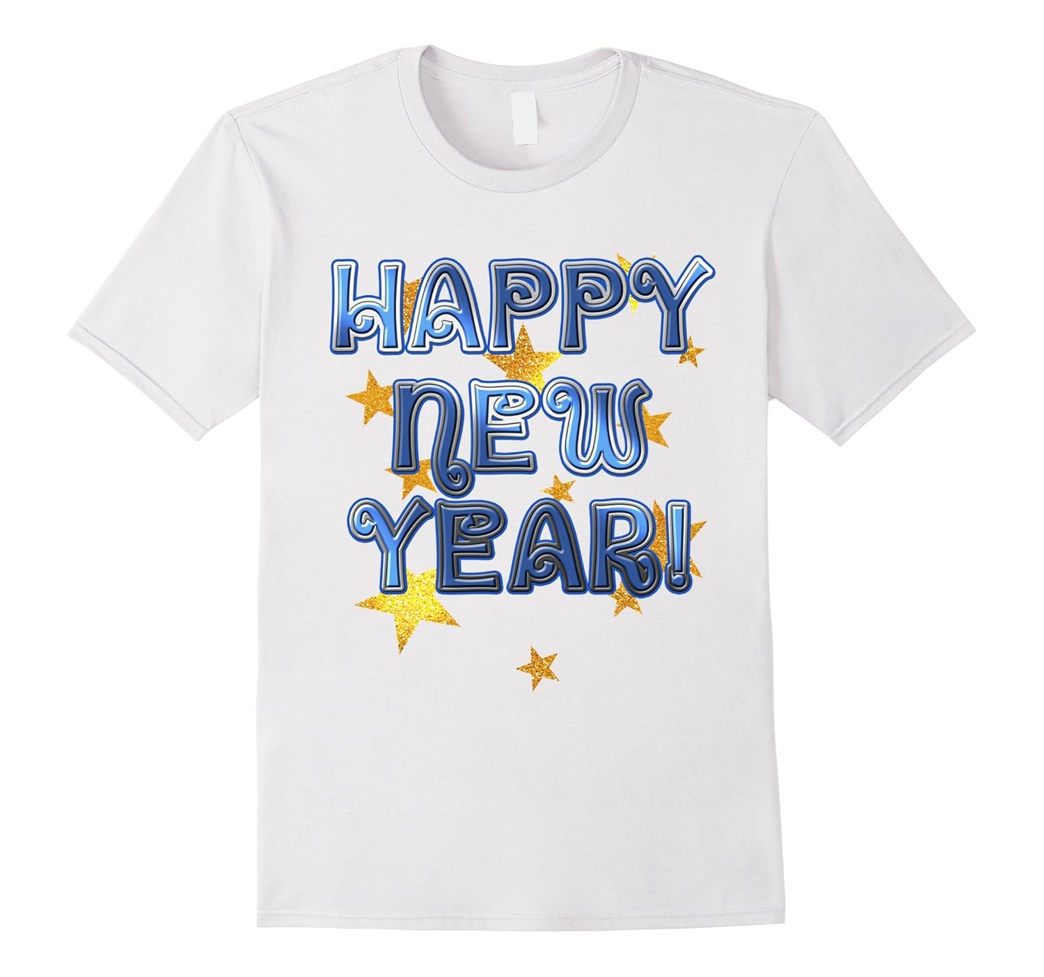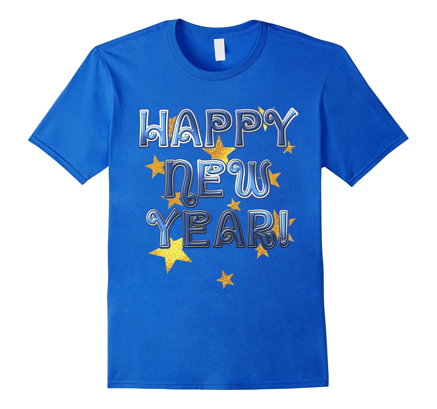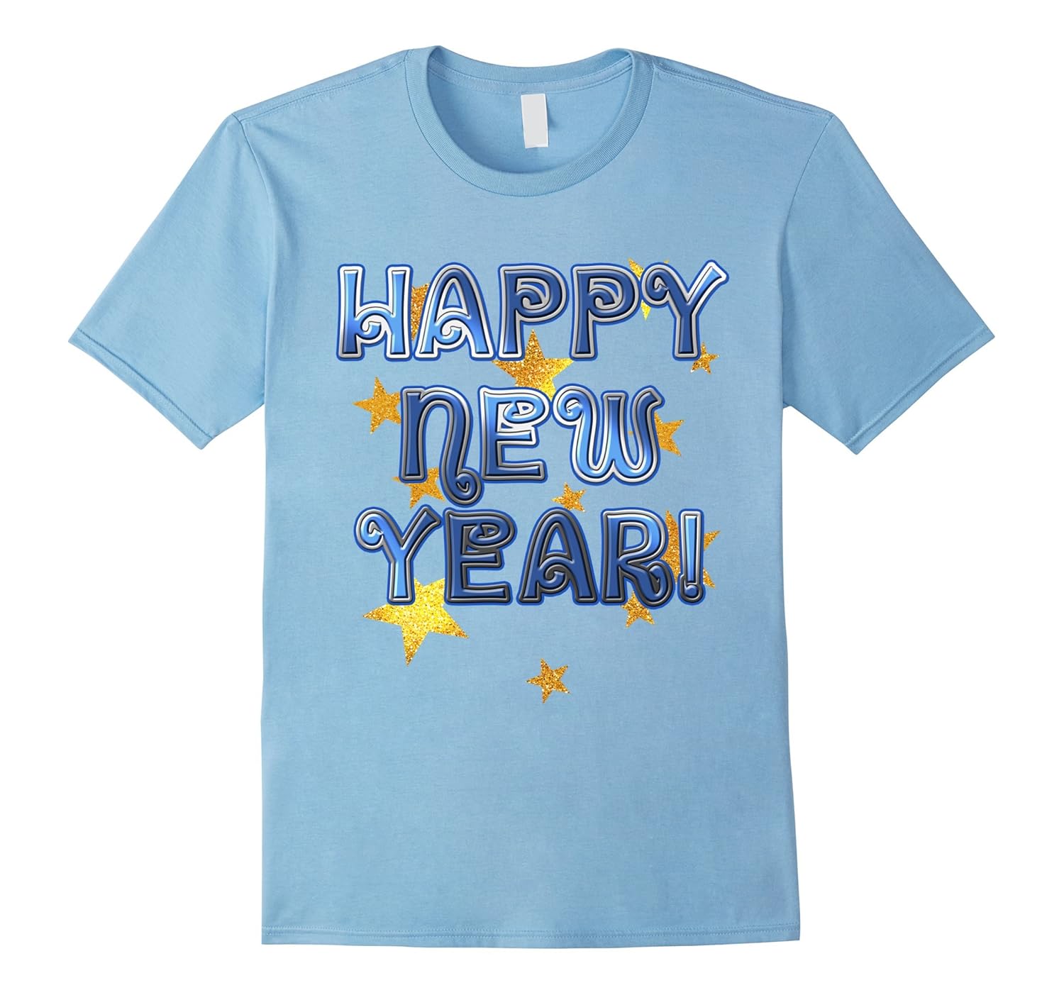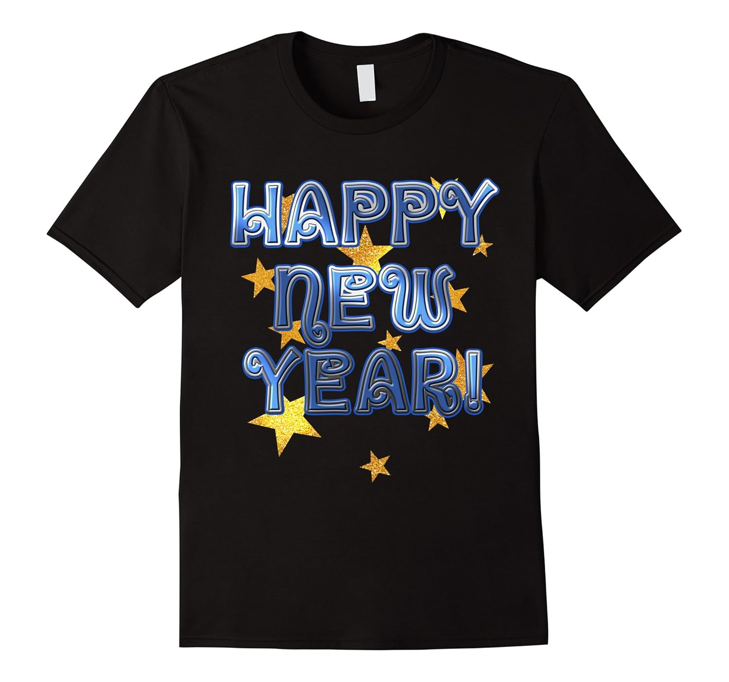 Solid colors: 100% Cotton; Heather Grey: 90% Cotton, 10% Polyester; All Other Heathers: 65% Cotton, 35% Polyester; Imported; Machine wash cold with like colors, dry low heat; SIZE UP 1-2 sizes for comfort and an easy fit. Available in multiple colors and plenty of sizes. Click on our brand name above (2018 New Years T-Shirts by Scarebaby) for more New Years tshirts.; HAPPY NEW YEAR t-shirt. Big blue text with a sprinkle of gold stars behind. For celebrating New Years.; Lightweight, Classic fit, Double-needle sleeve and bottom hem