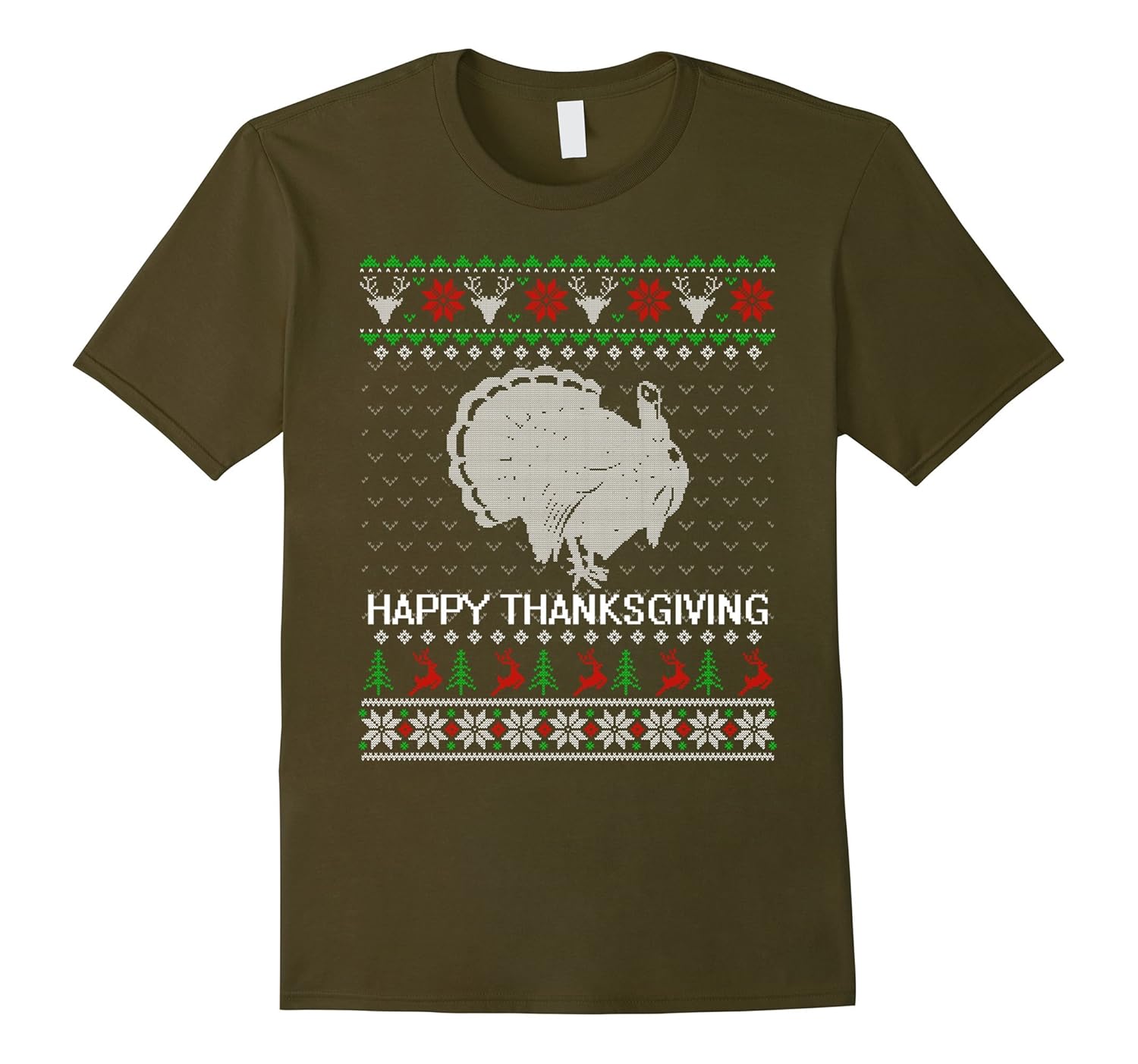 Happy Thanksgiving Funny Turkey Ugly Sweater Christmas Tee-ANZ