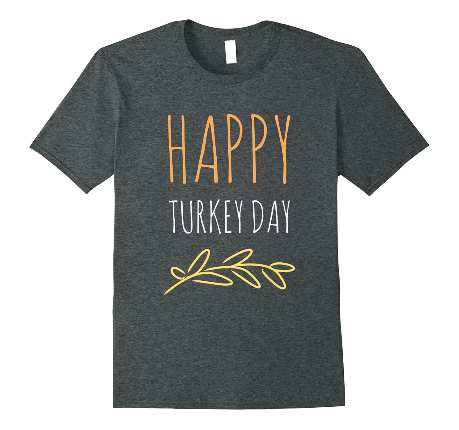 Solid colors: 100% Cotton; Heather Grey: 90% Cotton, 10% Polyester; All Other Heathers: 65% Cotton, 35% Polyester; Imported; Machine wash cold with like colors, dry low heat; This Happy Turkey Day T-Shirt is a cute and funny way to celebrate Thanksgiving this year with friends and family.; This Thanksgiving shirt is also a great present for kids, friends, teachers etc, and can be used for Christmas and any turkey day in between! For a looser fit please order a size up.; Lightweight, Classic fit, Double-needle sleeve and bottom hem