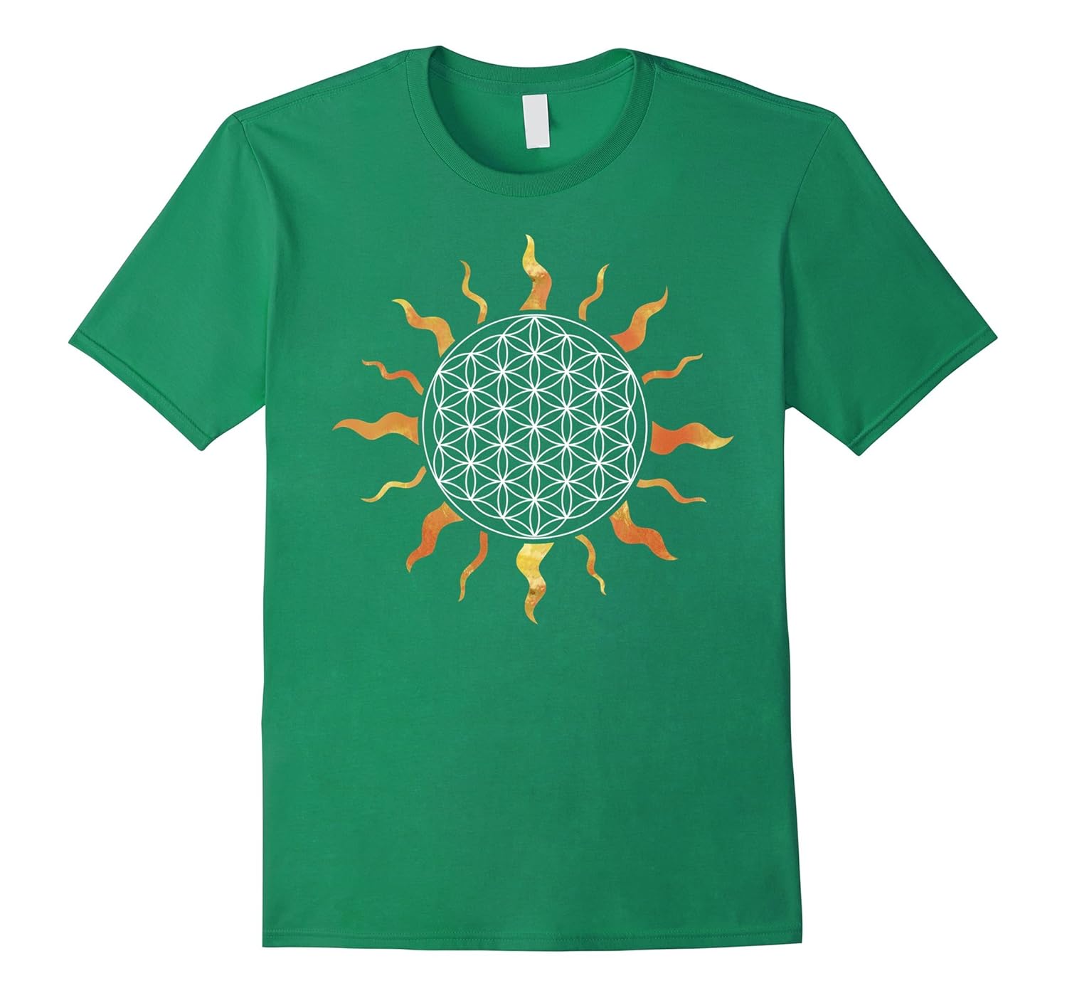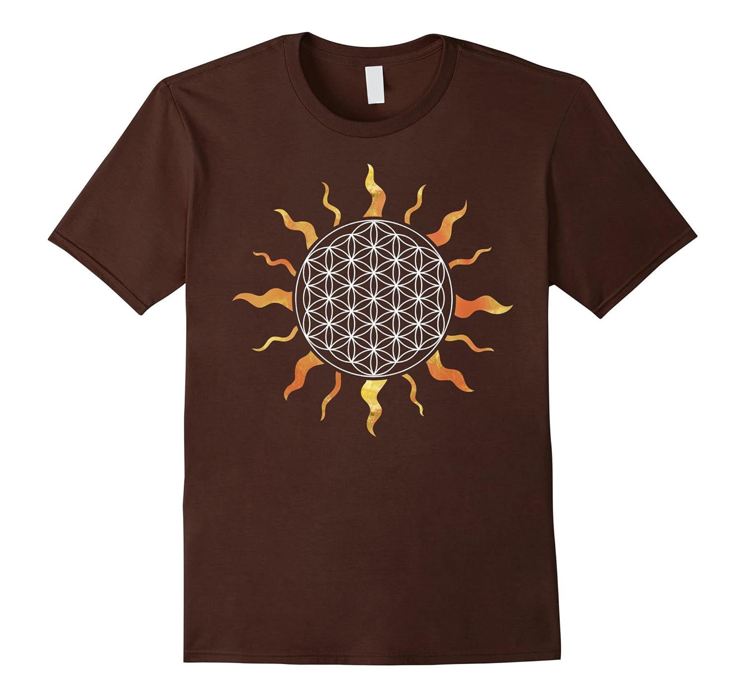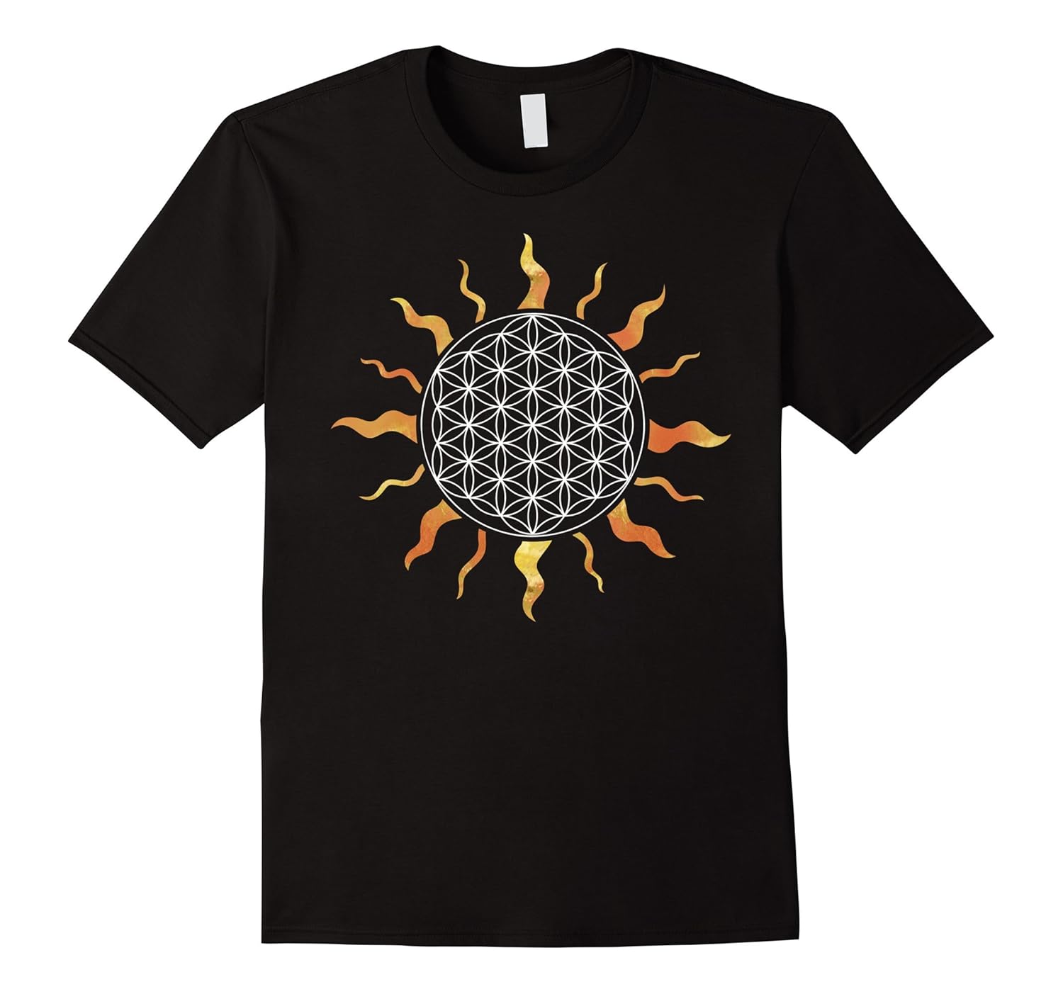 Solid colors: 100% Cotton; Heather Grey: 90% Cotton, 10% Polyester; All Other Heathers: 65% Cotton, 35% Polyester, Imported, Machine wash cold with like colors, dry low heat, T-Shirt. The flower of life with sun and watercolor sunbeams. Symbolizing vitality, power and spirituality. Lightweight, Classic fit, Double-needle sleeve and bottom hem