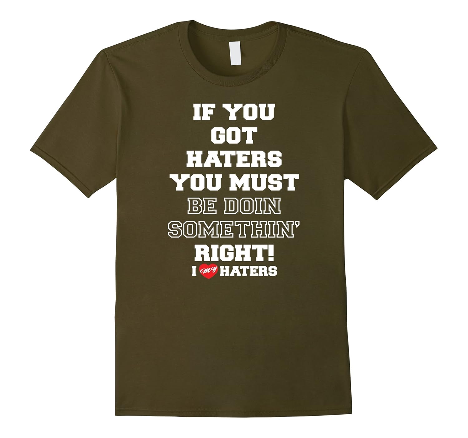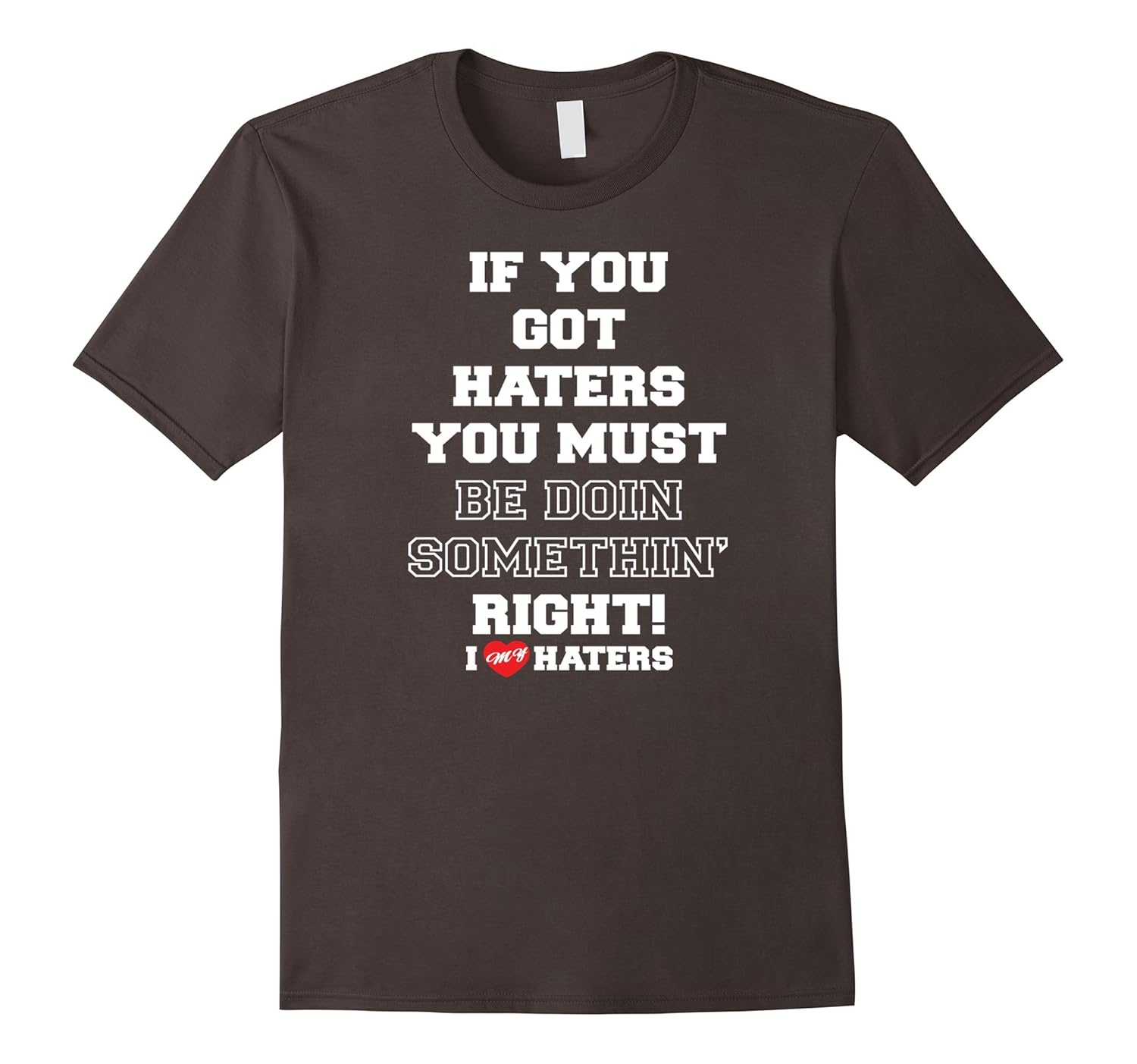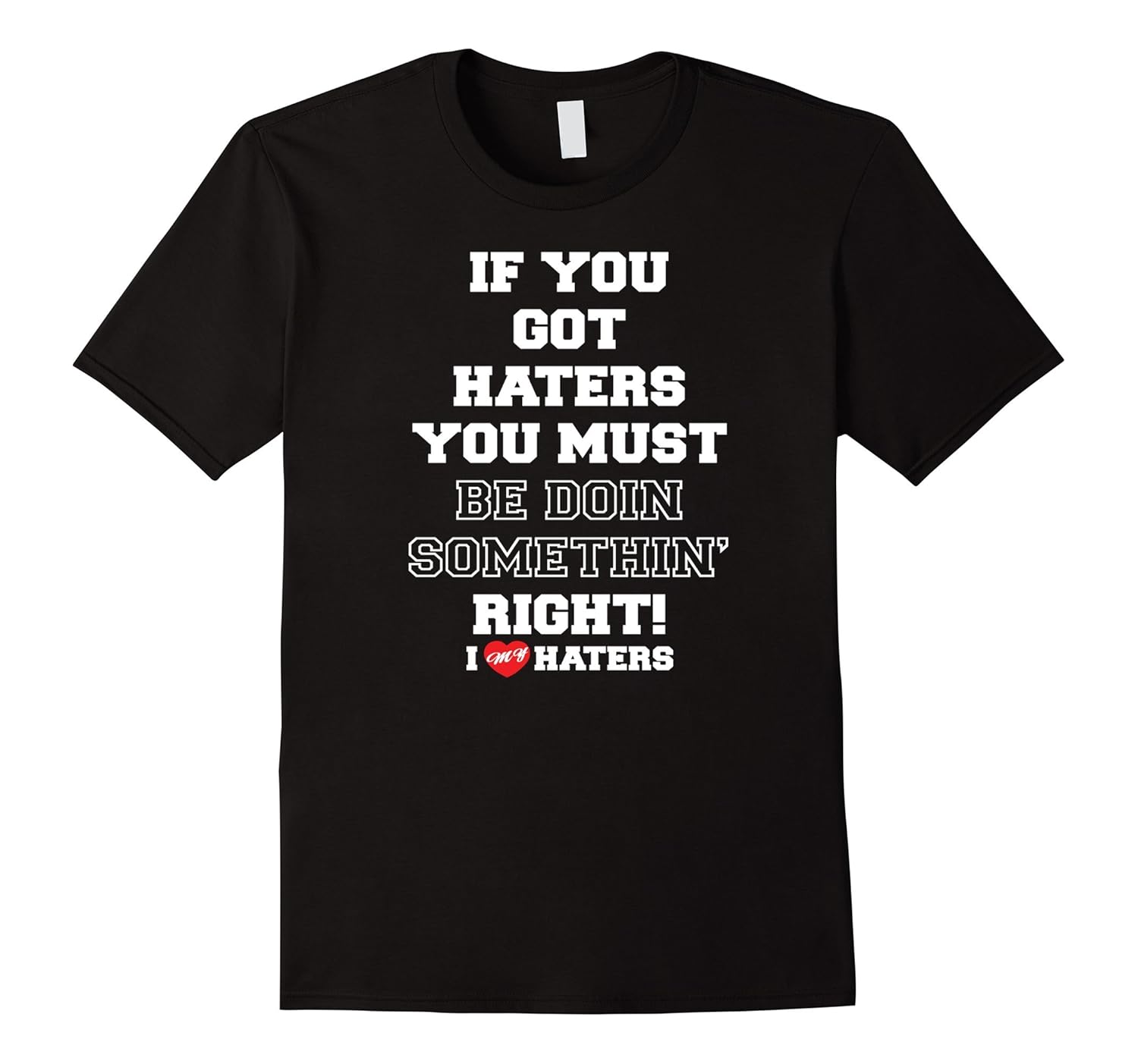 Solid colors: 100% Cotton; Heather Grey: 90% Cotton, 10% Polyester; All Other Heathers: 65% Cotton, 35% Polyester, Imported, Machine wash cold with like colors, dry low heat, hater, hate, i love haters, i love my haters, haters gonna hate, hate and love, love your enemies, enemy, hi hater, bye hater, funny, humor, slogan, hustler, hustle, success, envy, Lightweight, Classic fit, Double-needle sleeve and bottom hem