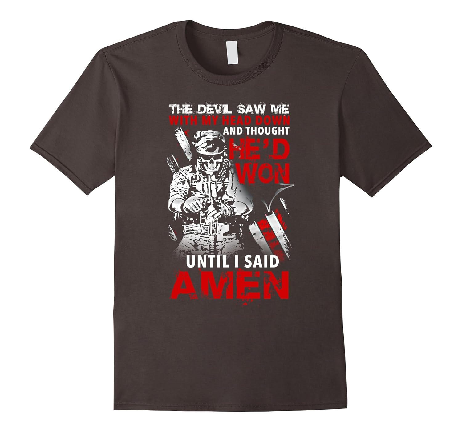 Solid colors: 100% Cotton; Heather Grey: 90% Cotton, 10% Polyester; All Other Heathers: 65% Cotton, 35% Polyester, Imported, Machine wash cold with like colors, dry low heat, veteran tshirt,vietnam veteran tshirt,army veteran tshirt,veterans tshirt,us army veteran tshirt,military veteran tshirt,proud army veteran tshirt, He”d Won Until I Said Amen Veteran T-Shirt, Lightweight, Classic fit, Double-needle sleeve and bottom hem